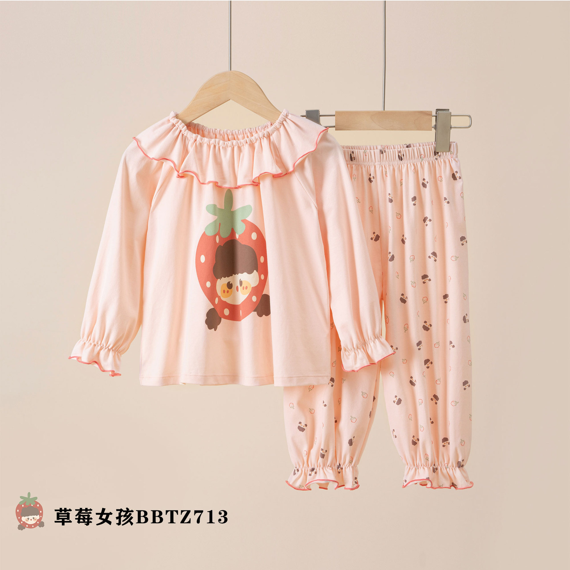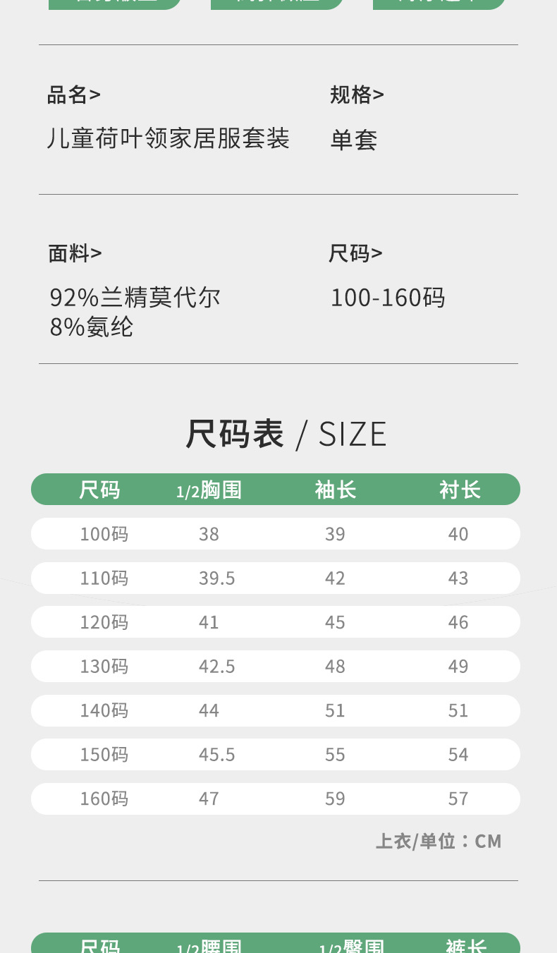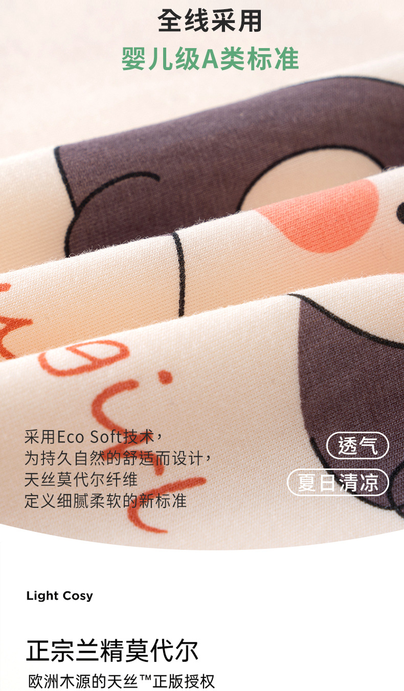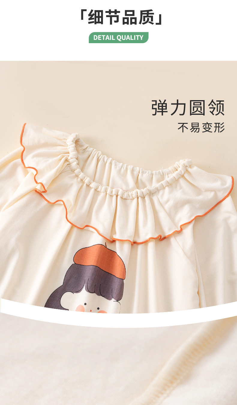 여름용 얇은 A급 렌징 모달 에어컨 의류, 중소형 아동용, 여아용, 연잎 칼라, 달콤하고 귀여운 잠옷 세트스토어 가기