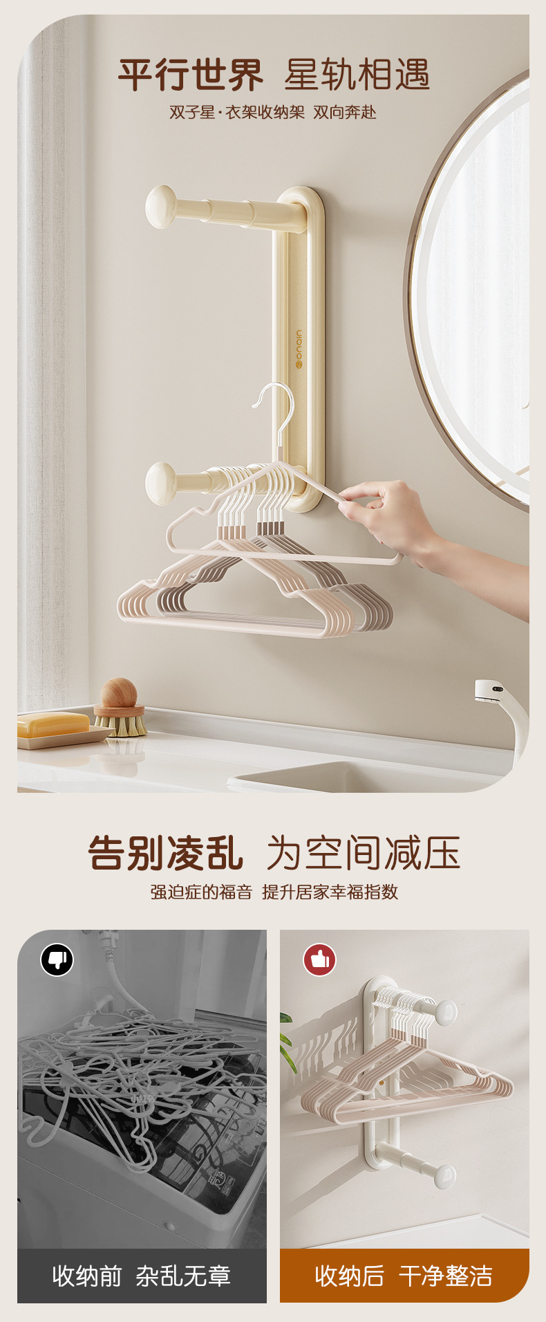 접이식 옷걸이 수납선반, 펀치프리 아티팩트, 발코니 정리후크, 벽걸이형 벽걸이 후크