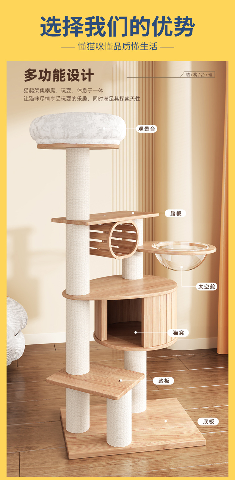 고양이 등반 랙 고양이 둥지 고양이 나무 통합 단단한 나무 공간 캡슐 고양이 등반 랙 대마 로프 고양이 스크래치 보드 고양이 장난감 고양이 용품스토어 가기