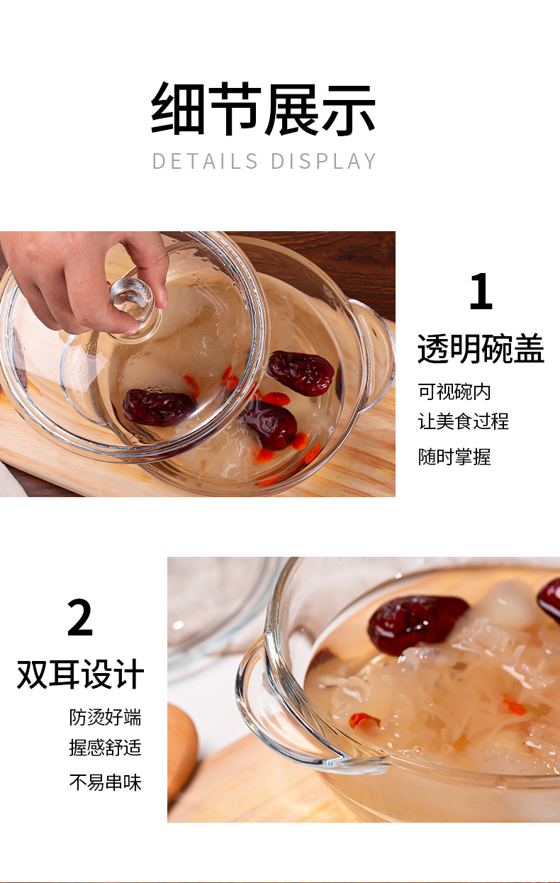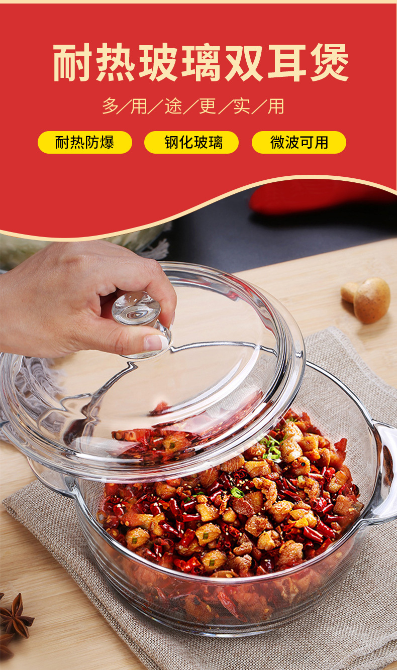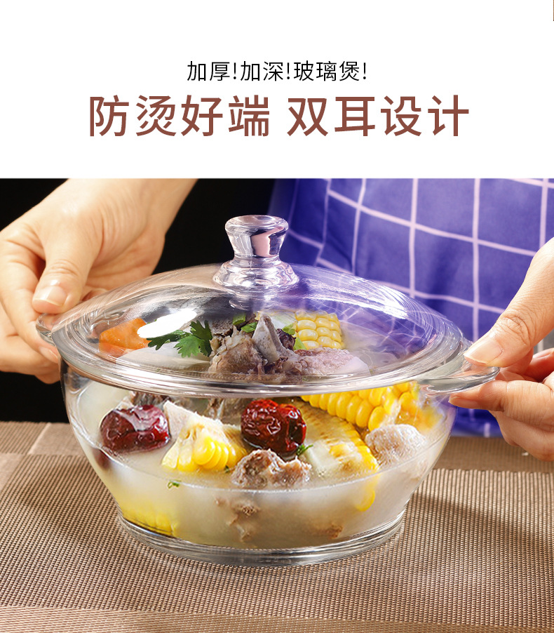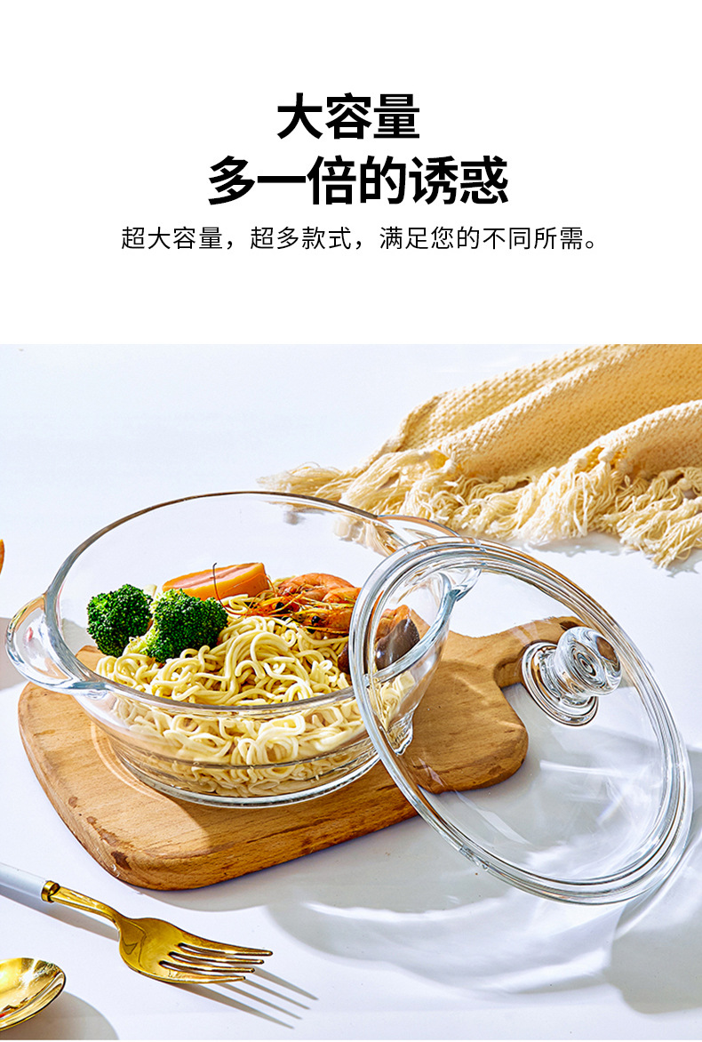 고온 내성 강화 유리 그릇 가정용 방열 국수 그릇 특수 용품 전자 레인지 오븐 대형 이중 귀 수프 냄비 뚜껑스토어 가기