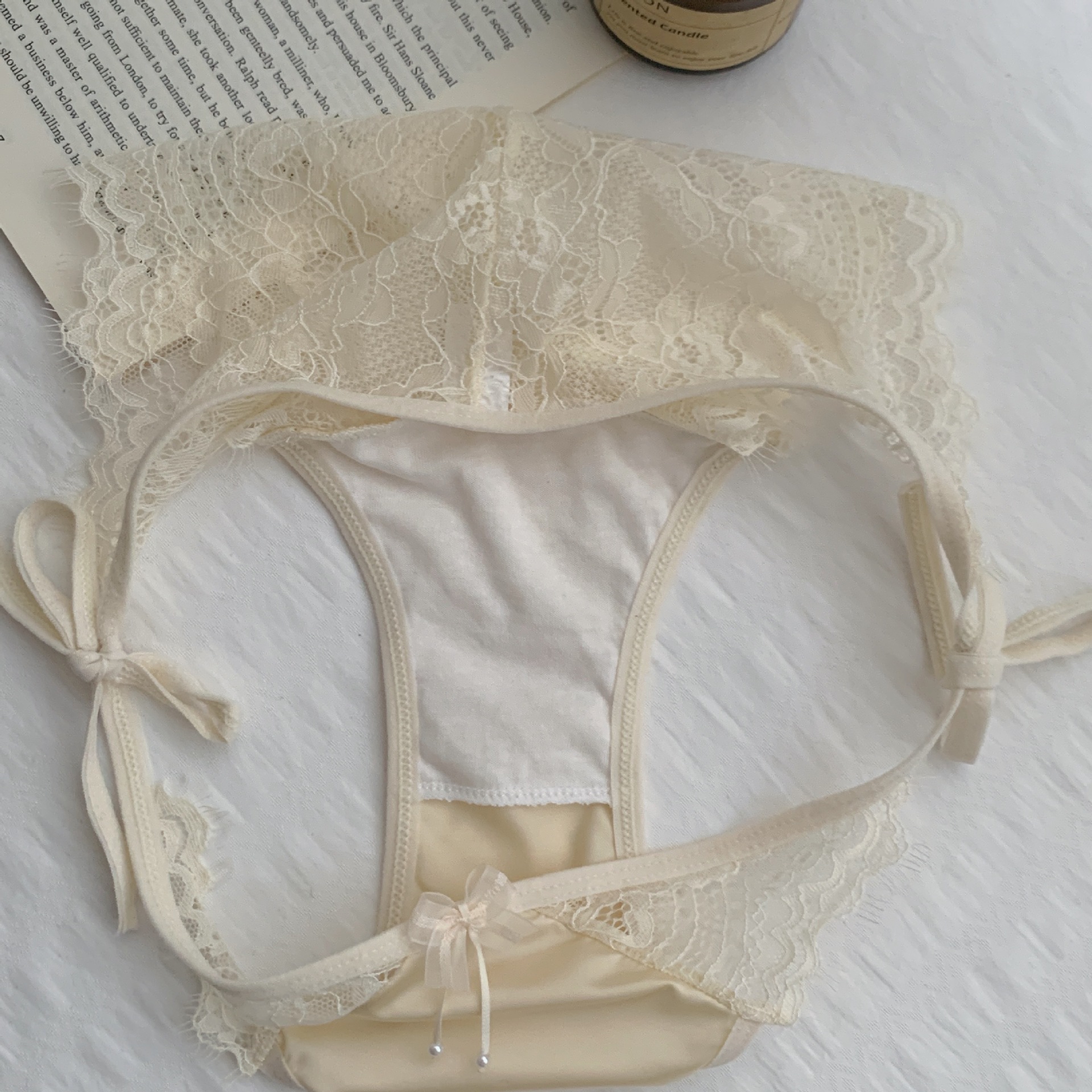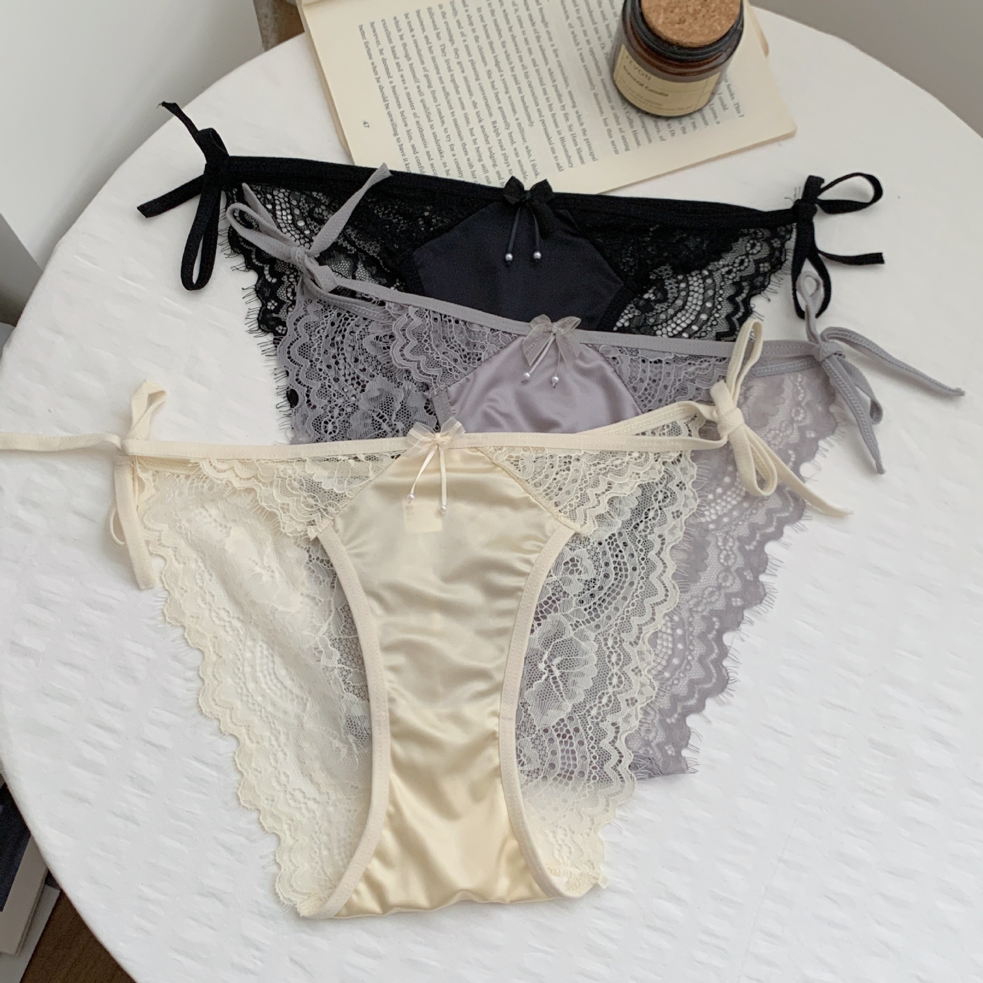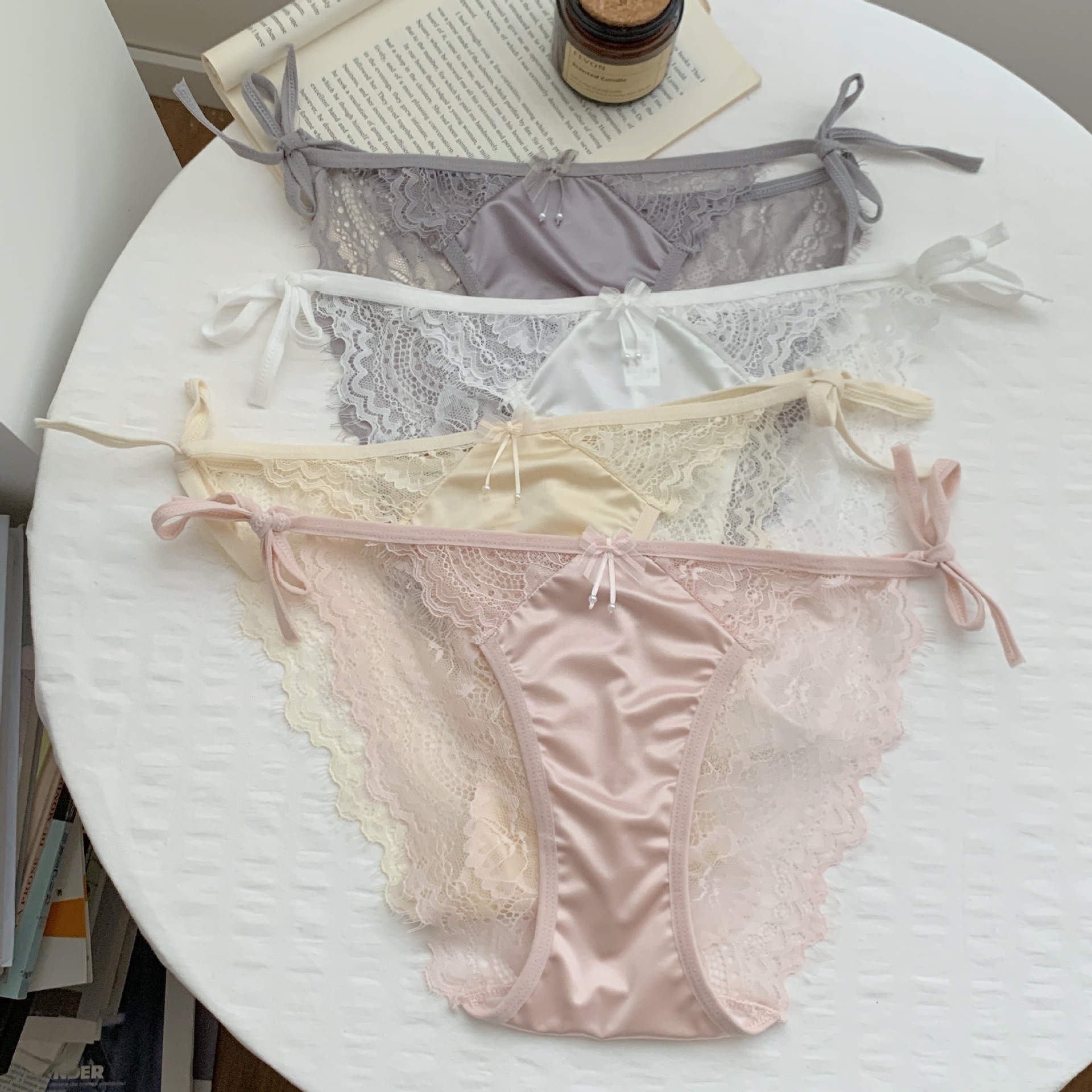 작은 여성 속옷 낮은 허리 삼각형 반바지 초박형 섹시한 레이스 투명 스트랩 나비 코튼 크로트 일본 새틴