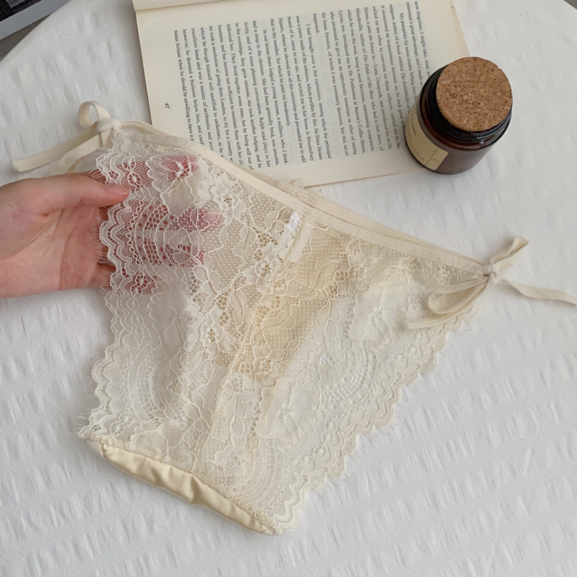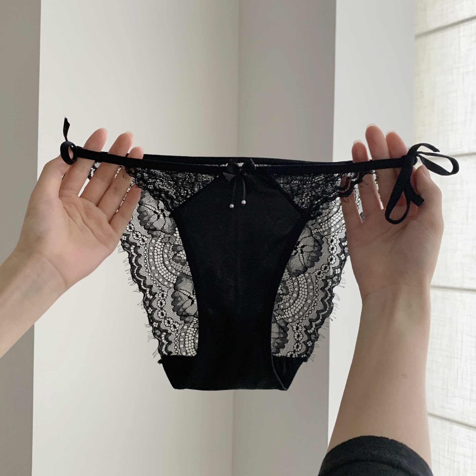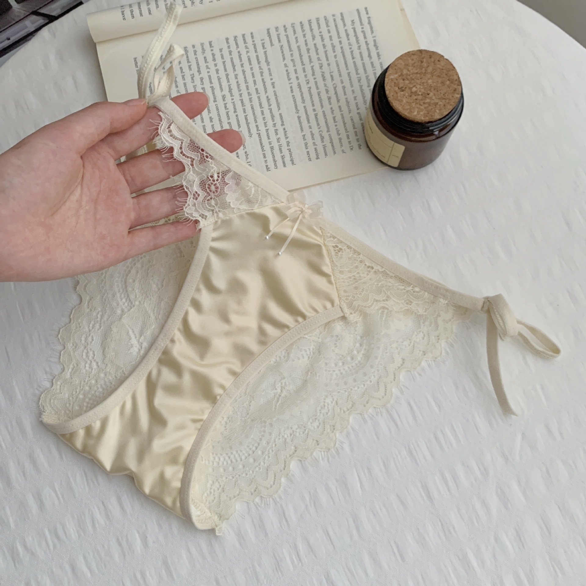 작은 여성 속옷 낮은 허리 삼각형 반바지 초박형 섹시한 레이스 투명 스트랩 나비 코튼 크로트 일본 새틴