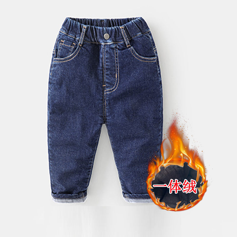 소년 2025 봄, 가을, 겨울 새로운 스타일 청바지, 세련된 탄성 아동복 소년 벨벳 느슨한 얇은 긴 바지스토어 가기