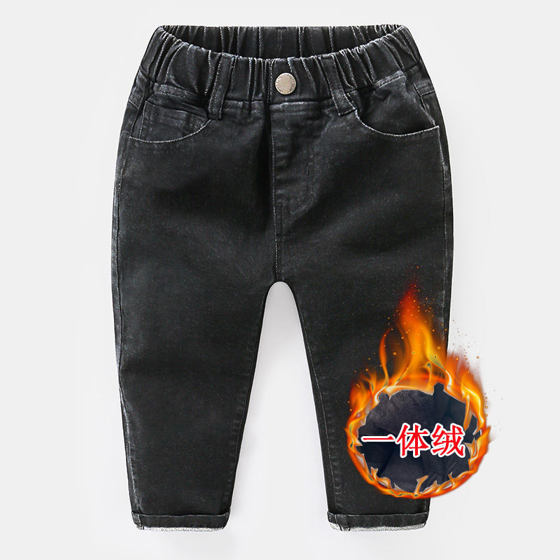 소년 2025 봄, 가을, 겨울 새로운 스타일 청바지, 세련된 탄성 아동복 소년 벨벳 느슨한 얇은 긴 바지