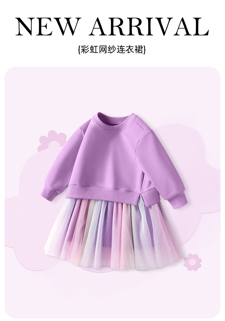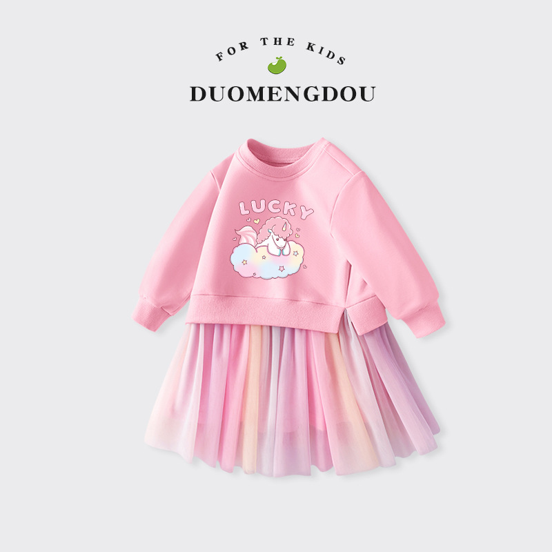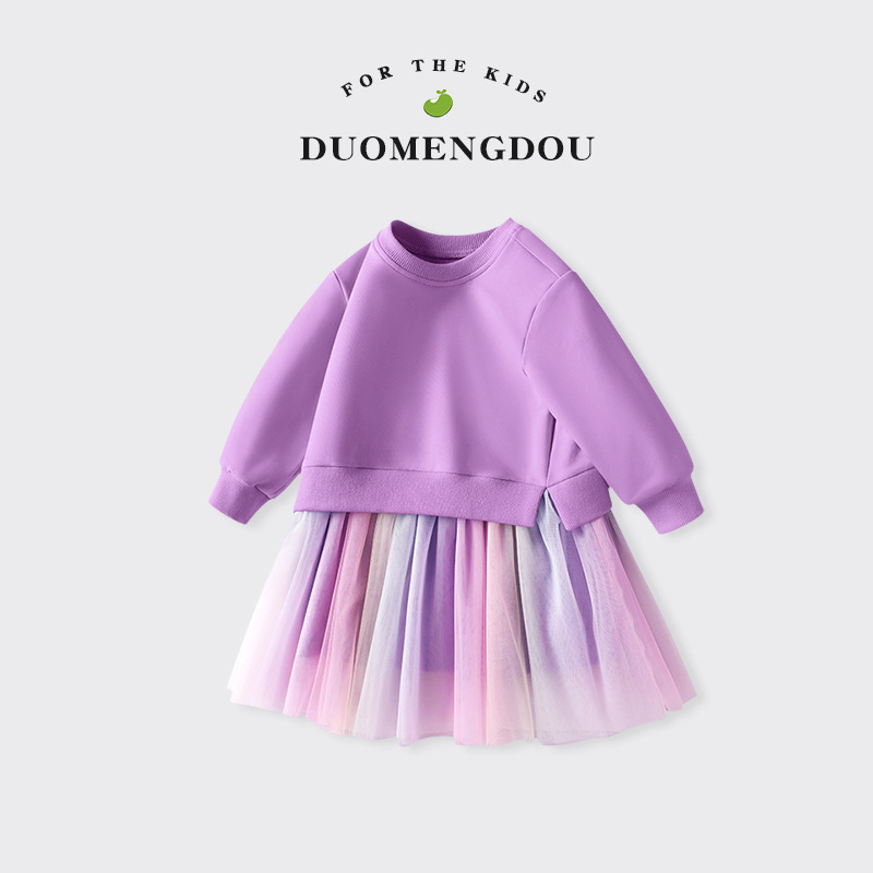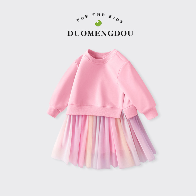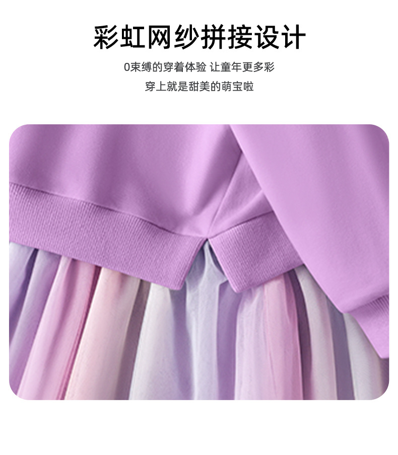 두몽두 여아 원피스 2025 봄 가을 스타일 중소 아동용 투피스 롱 드레스 여아 레인보우 메쉬 드레스 LAB스토어 가기