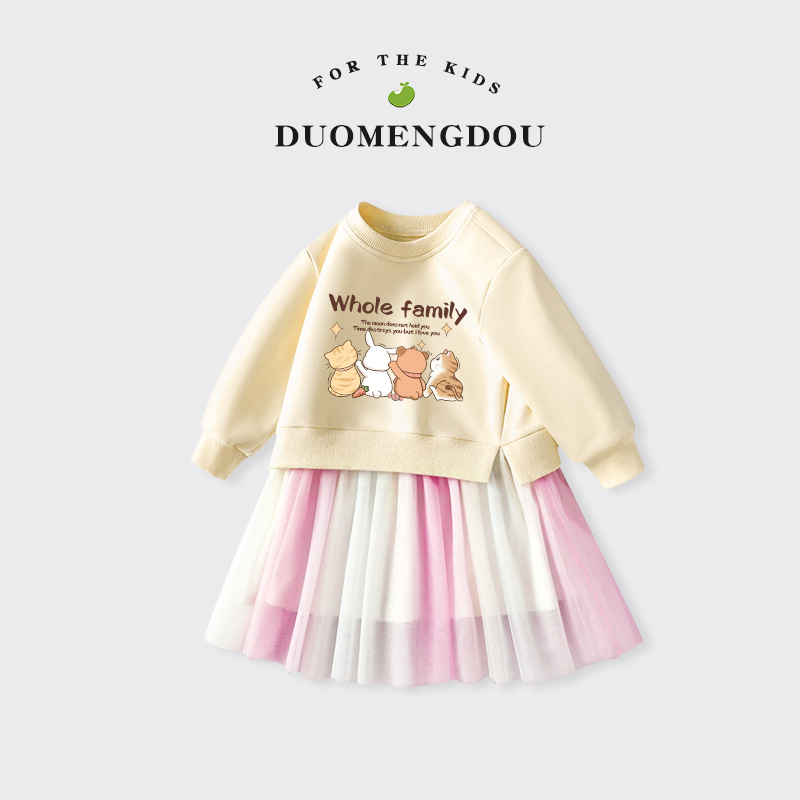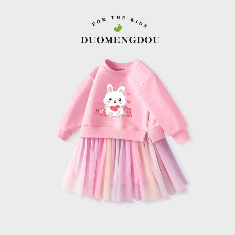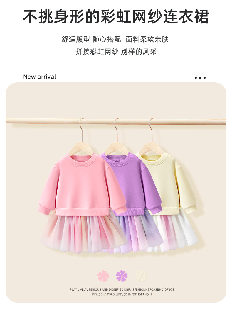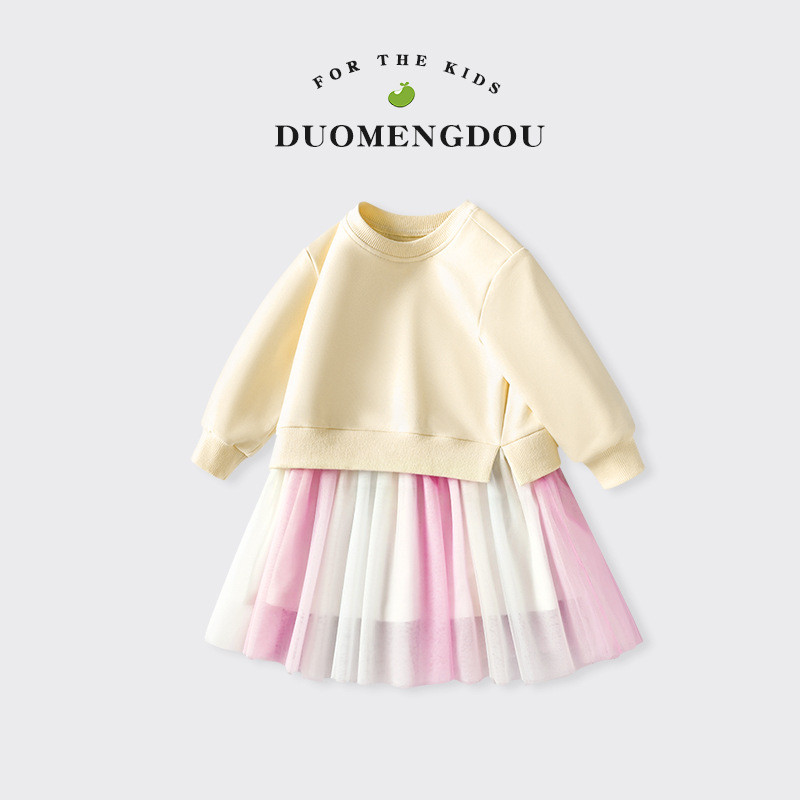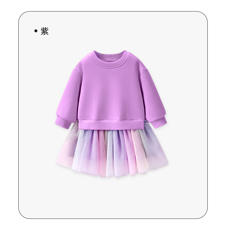 두몽두 여아 원피스 2025 봄 가을 스타일 중소 아동용 투피스 롱 드레스 여아 레인보우 메쉬 드레스 LAB스토어 가기