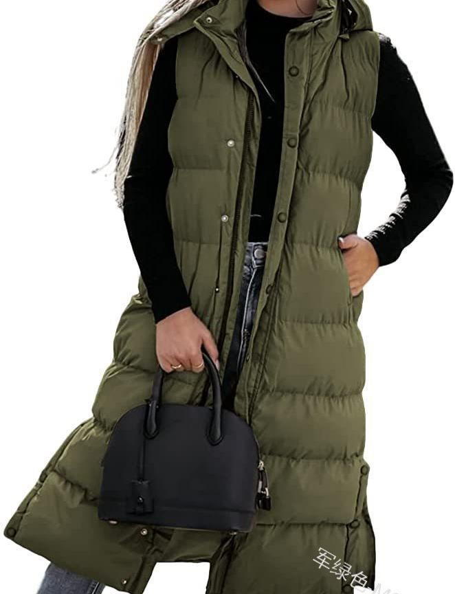 국경 2024 유럽과 미국의 단색 중간 길이 조끼 후드 탑 여성 캐주얼 패션 지퍼 싱글 브레스트 재킷스토어 가기
