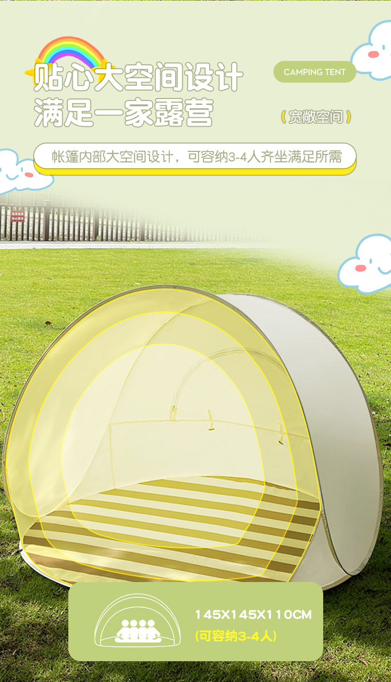 야외 어린이 해변 피크닉 텐트 단일 자동 접이식 휴대용 빠른 열기 선 스크린 및 양산 통기성 텐트