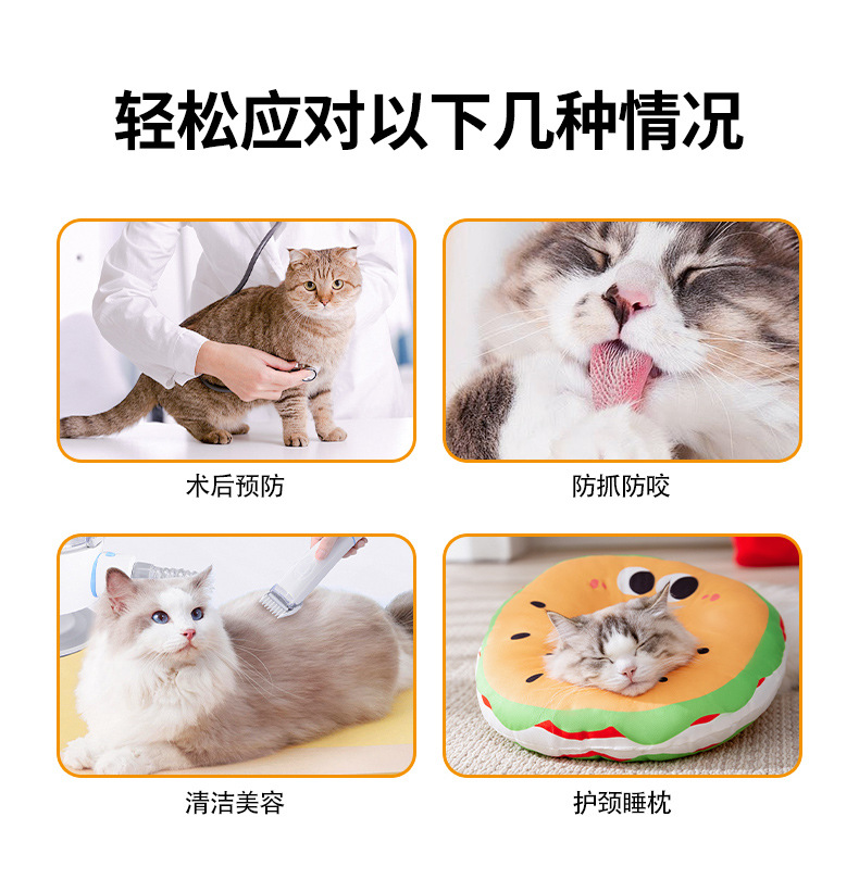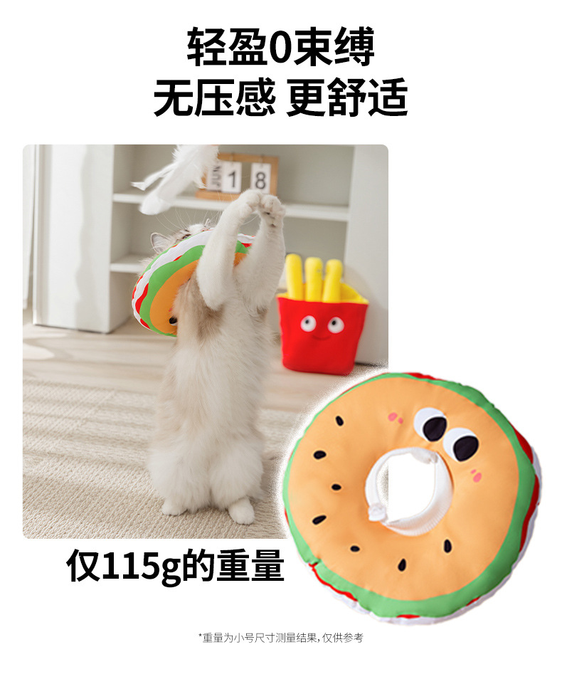 햄버거 모델 엘리자베스 칼라 고양이 목걸이 살균 후 핥기 방지 보호 조절 가능한 헤드 기어 애완견 용품스토어 가기