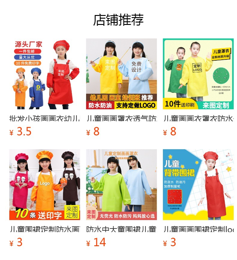 어린이 앞치마 인쇄 미술관 서예 방수 유치원 그림옷 앞치마 로고 인쇄 가능 민소매스토어 가기