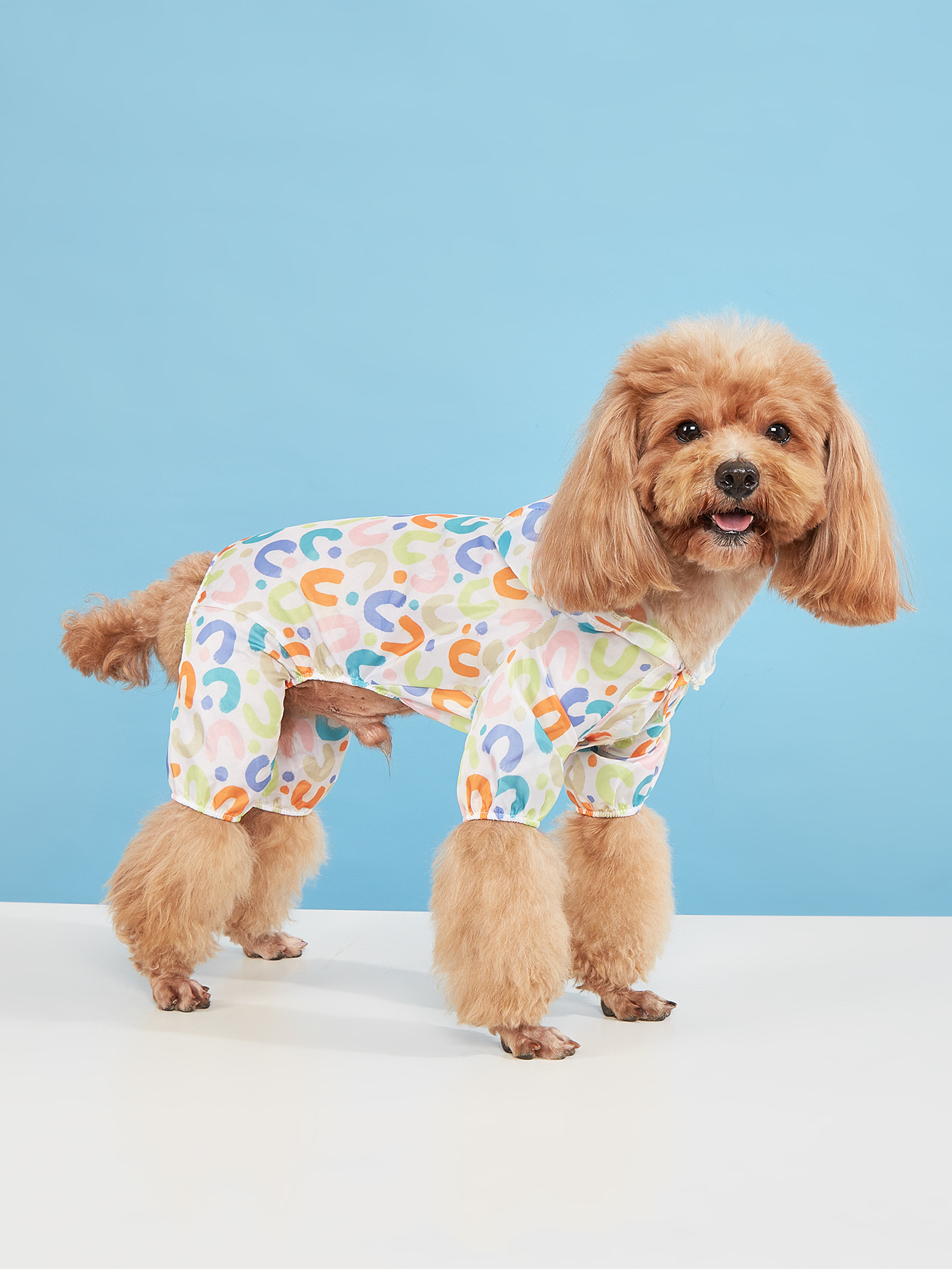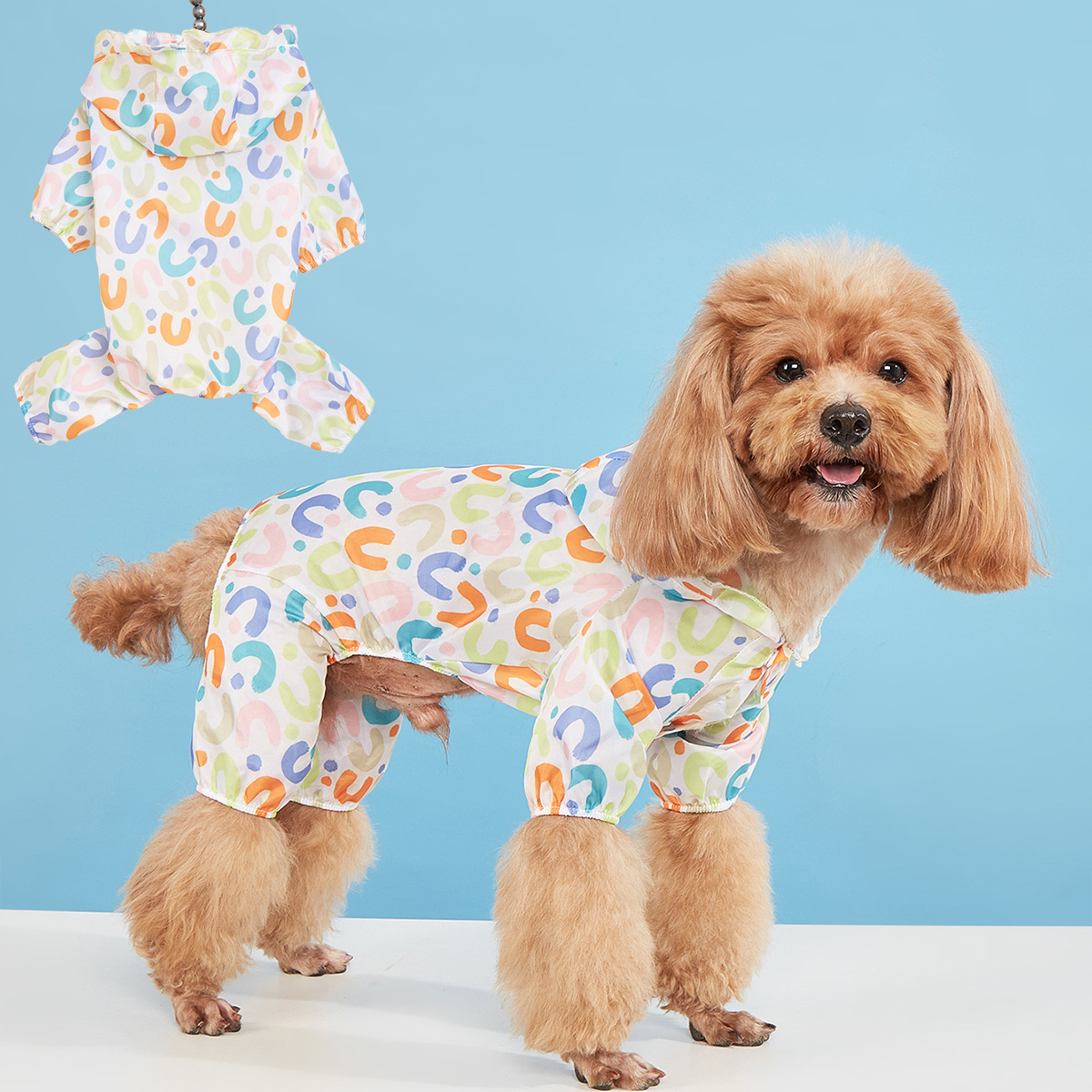국경 간 재고 공장 도매 애완 동물 의류 봄과 여름 애완 동물 인쇄 의류 후드 방수 4 발 비옷