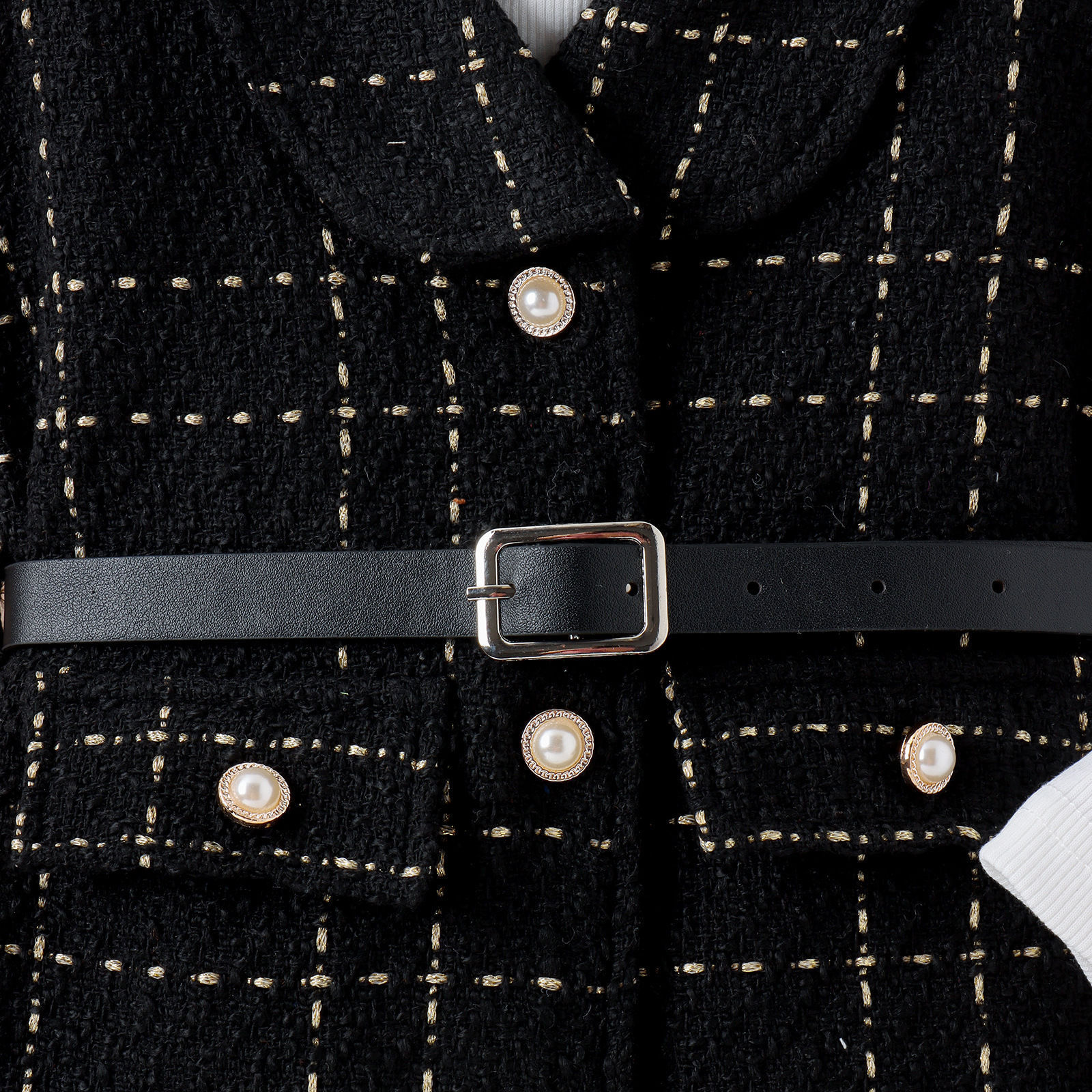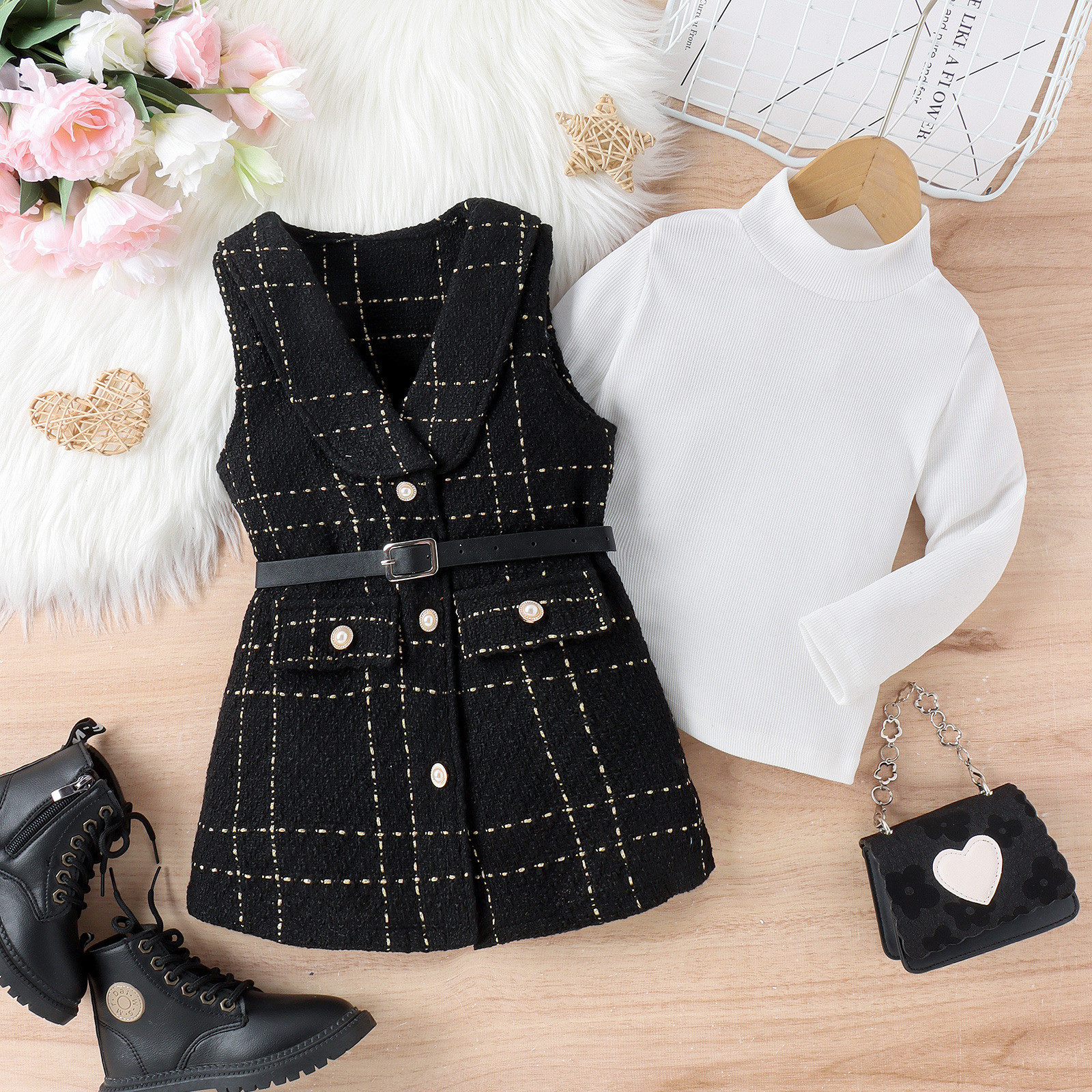 국경 간 아동복 가을과 겨울 유럽과 미국 소녀 자수 조끼 A 라인 스커트 높은 칼라 피트 긴 소매 티셔츠 벨트 세트스토어 가기