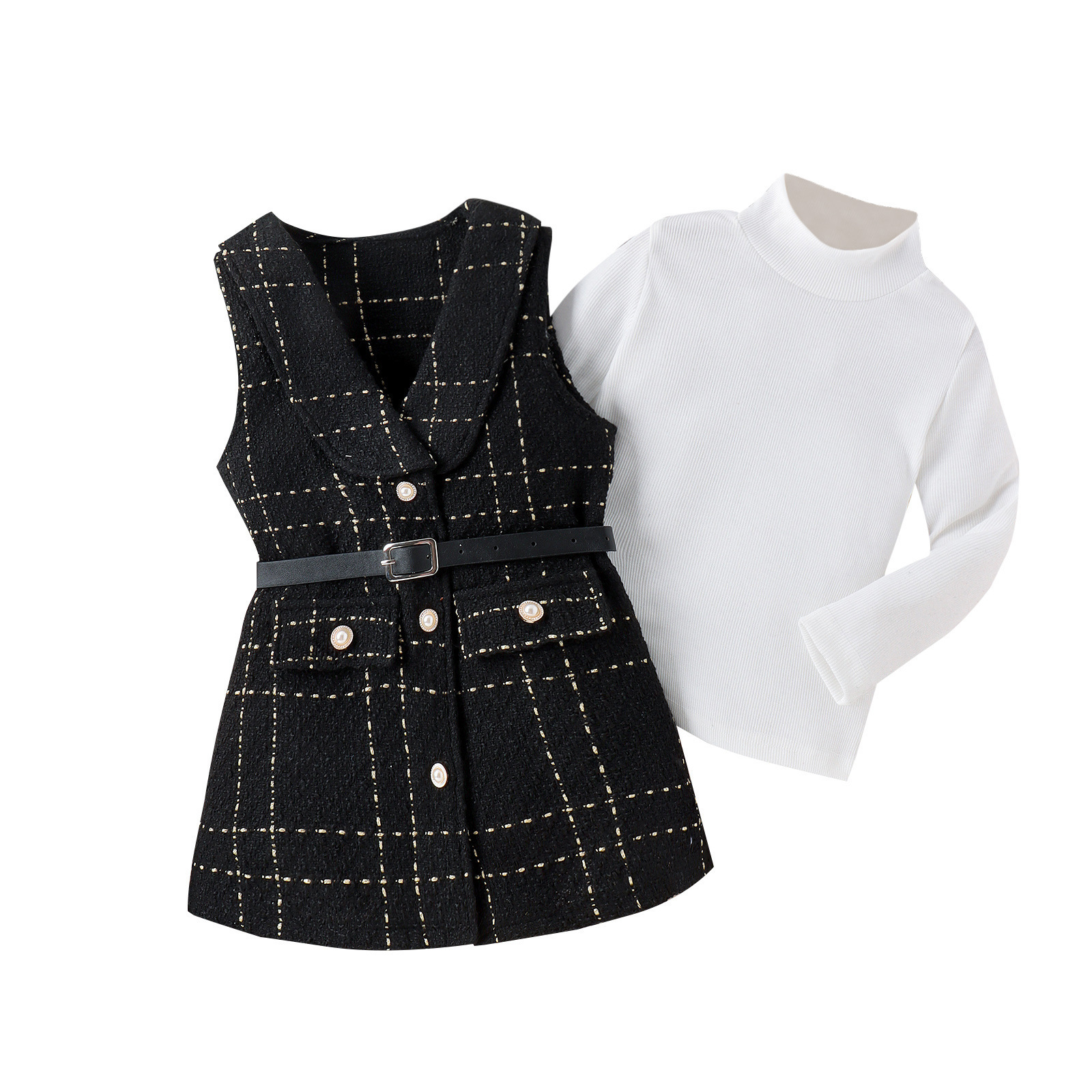 국경 간 아동복 가을과 겨울 유럽과 미국 소녀 자수 조끼 A 라인 스커트 높은 칼라 피트 긴 소매 티셔츠 벨트 세트