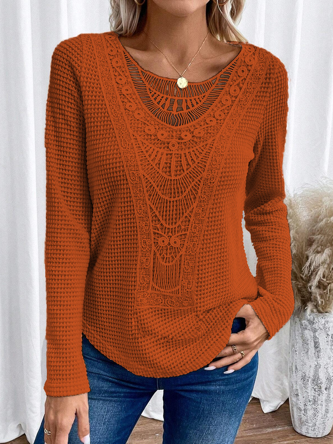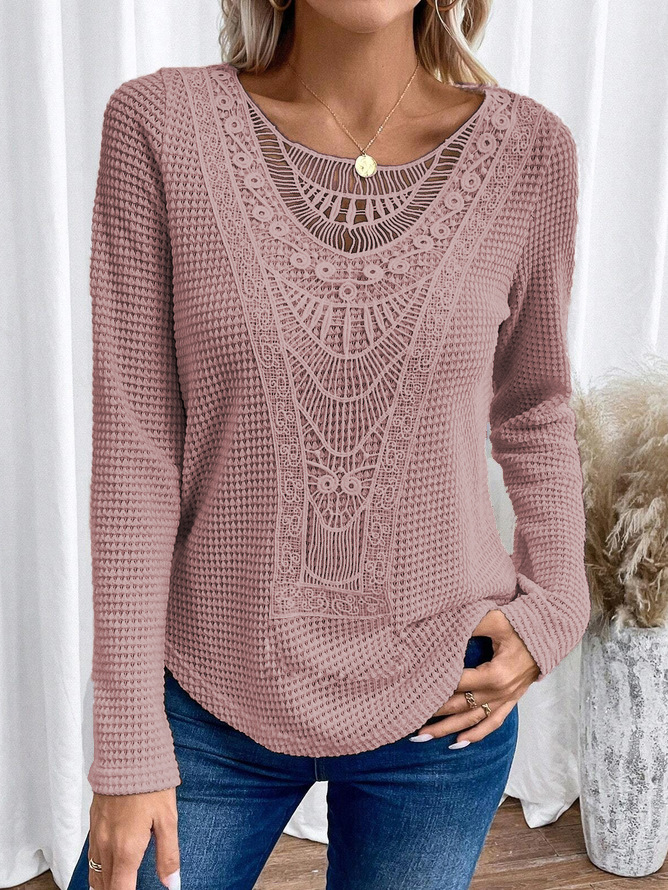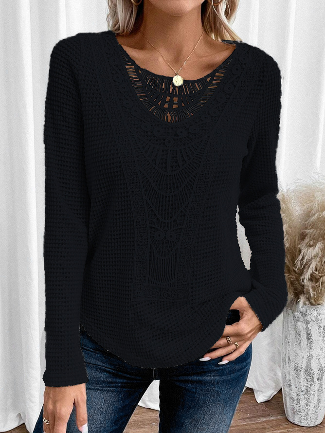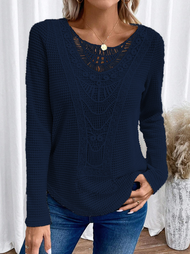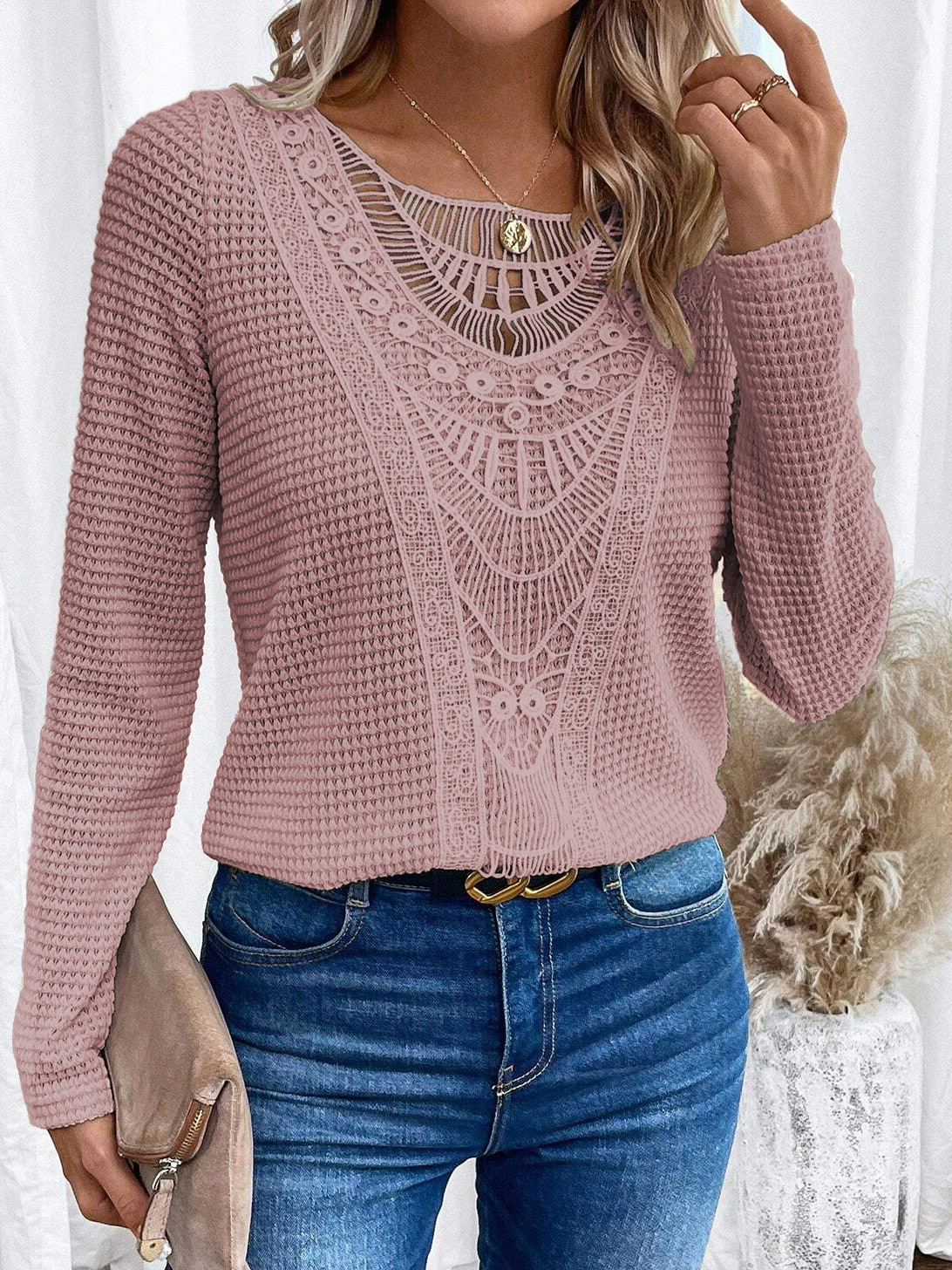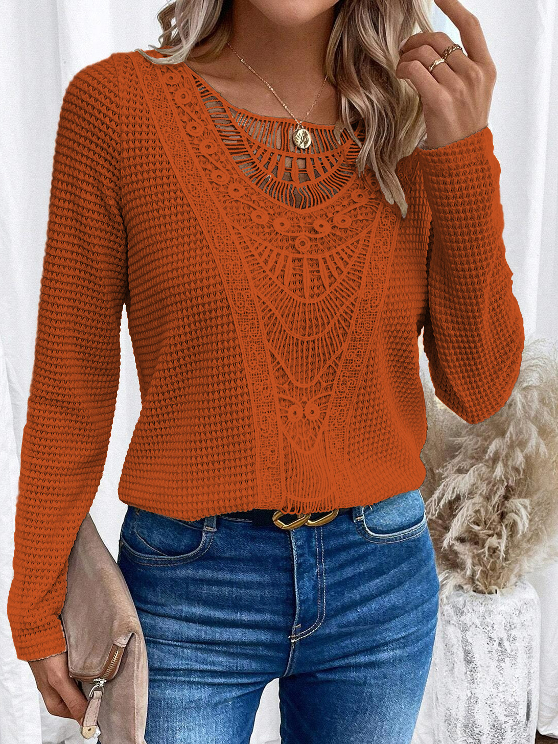 2024 국경을 넘는 유럽과 미국 가을과 겨울 새로운 아마존 레이스 스티칭 파인애플 긴팔 티셔츠 최고 여성 국경