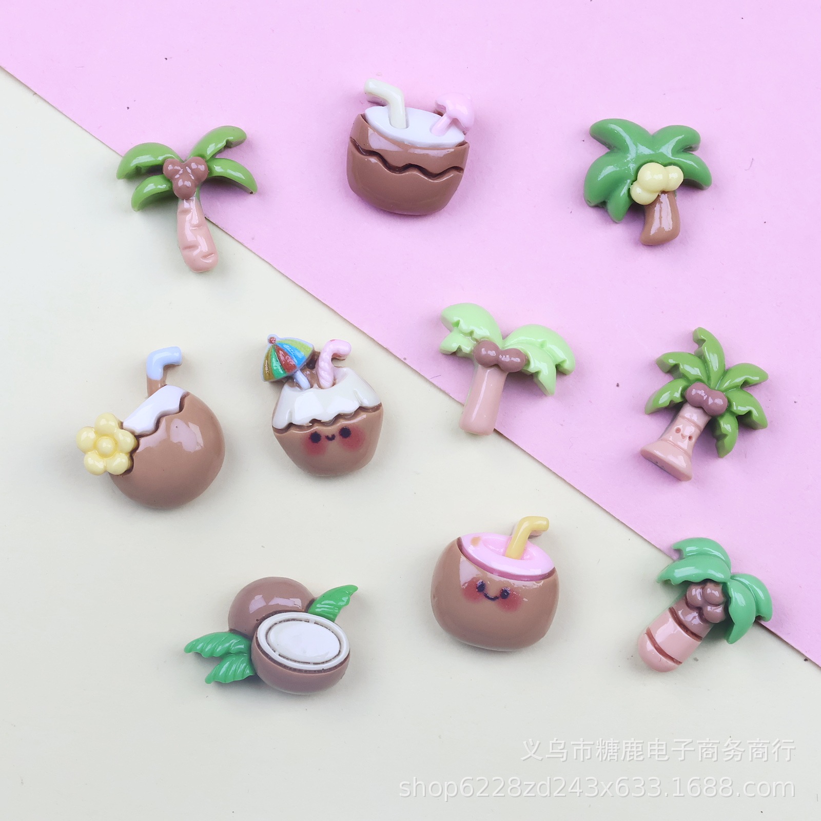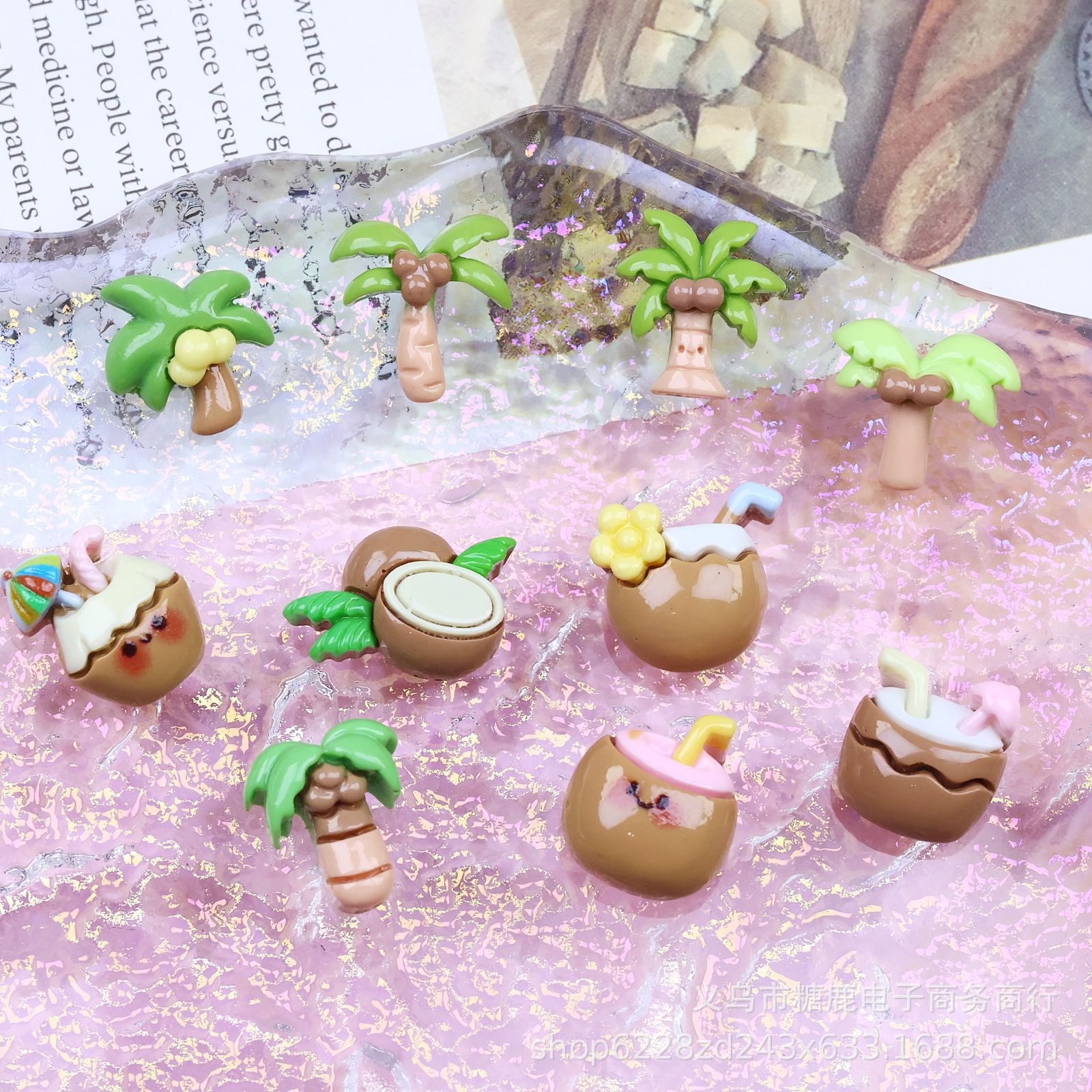 미니 스몰 사이즈 코코넛 나무 코코넛 주스 수지 액세서리 크림 젤 DIY 전화 케이스 냉장고 스티커 네일 헤어 액세서리 배치