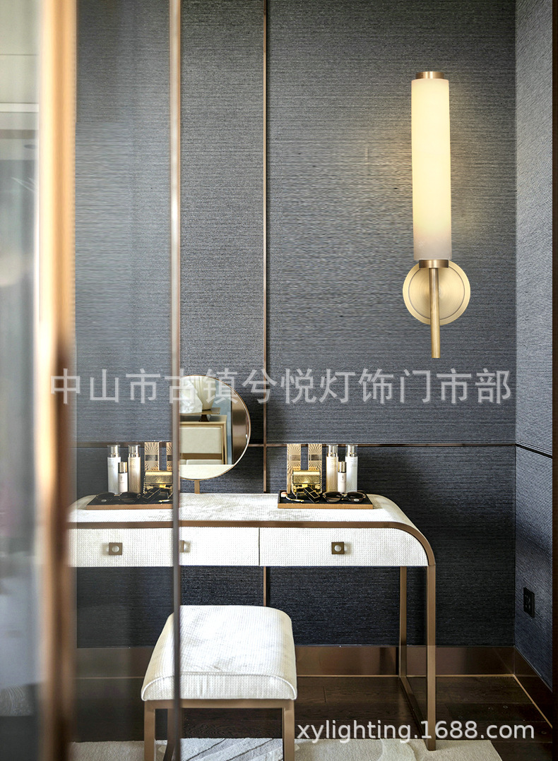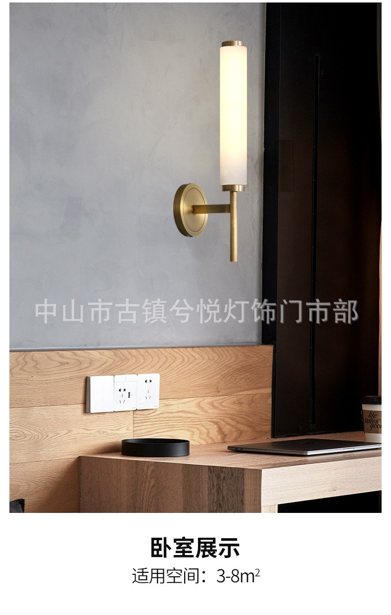 새로운 스타일 가벼운 럭셔리 모든 구리 침실 침실 돌 벽 램프 새로운 중국 스타일 간단한 거실 입구 통로 배경 벽 램프스토어 가기