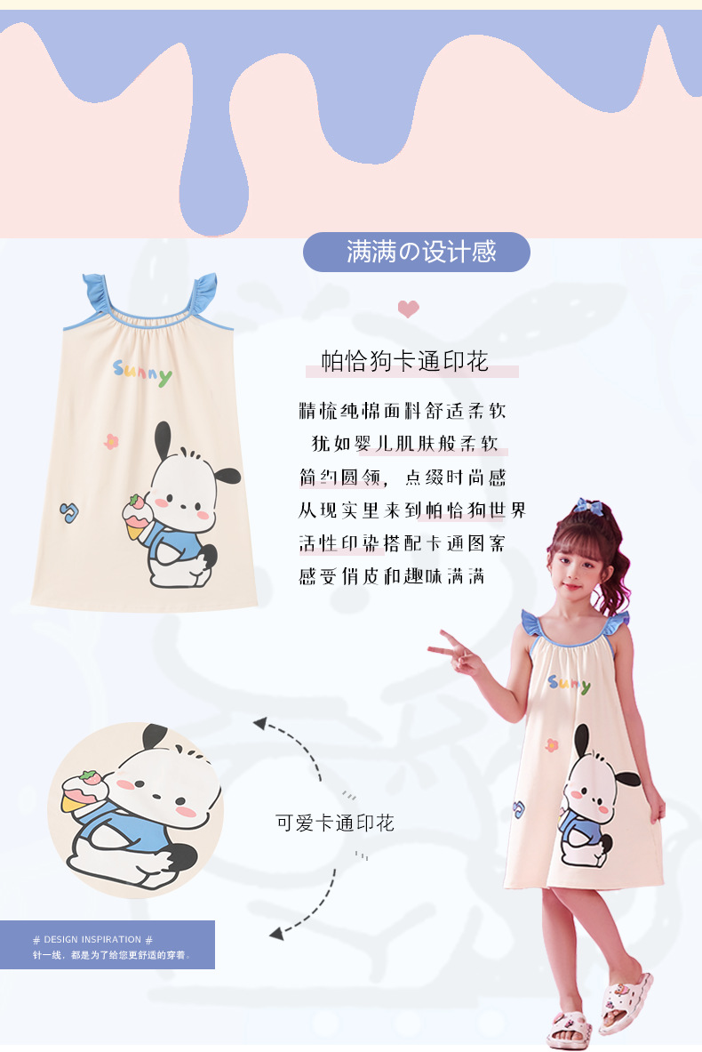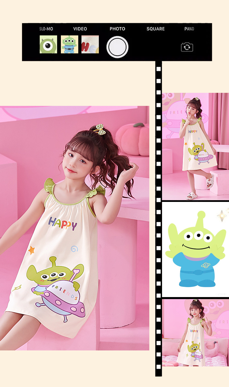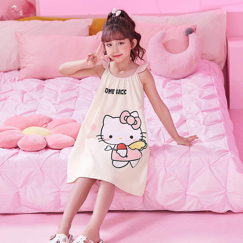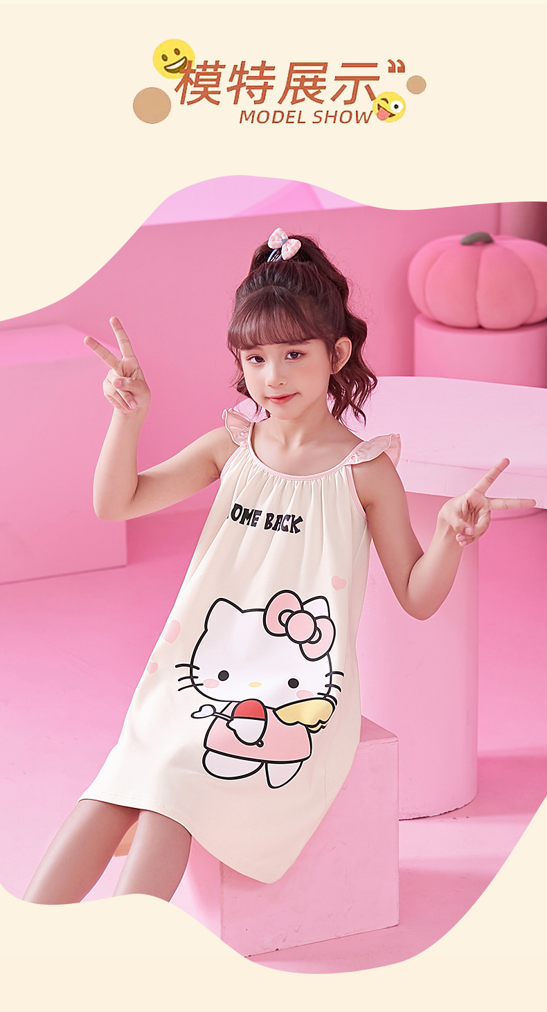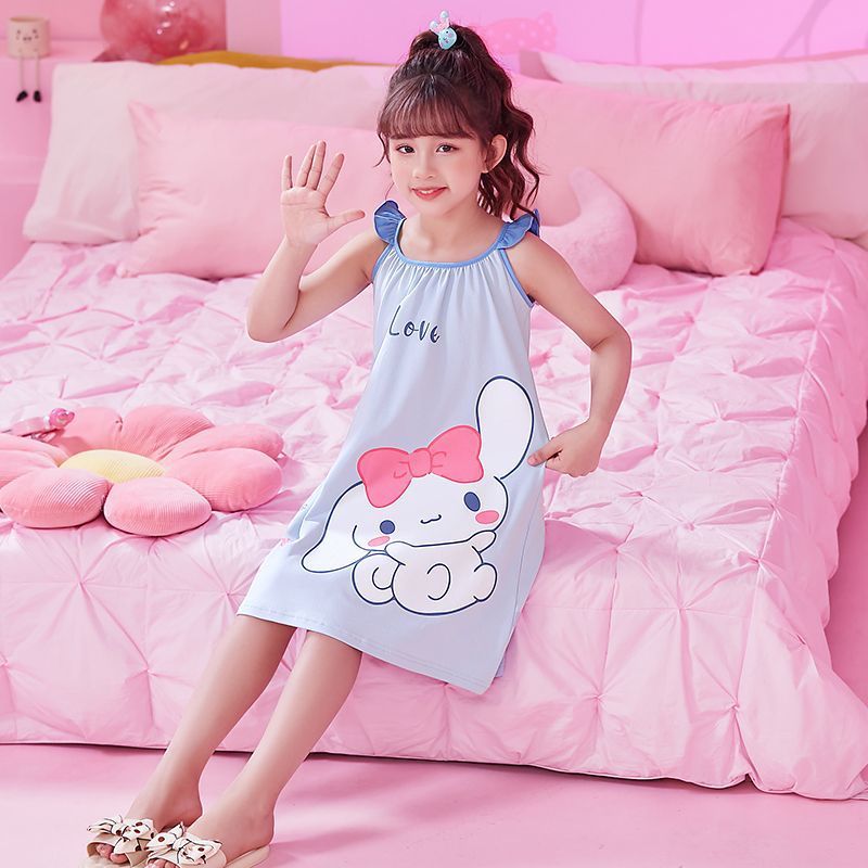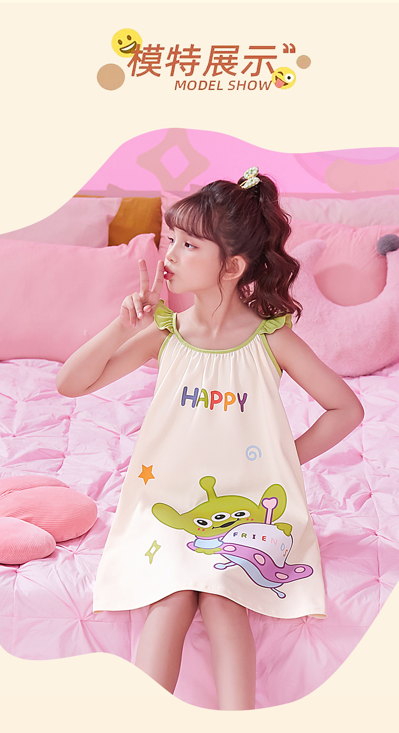 여름 어린이 나이트 가운 여성의 새로운 민소매 코튼 귀여운 어린 소녀 공주 무릎 위 외부 착용 홈 의류 나이트 가운스토어 가기