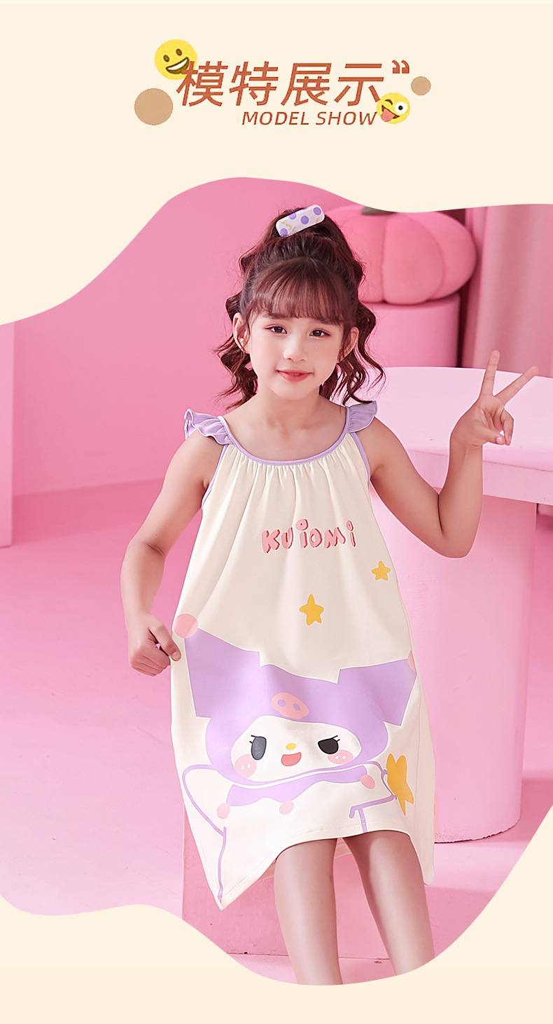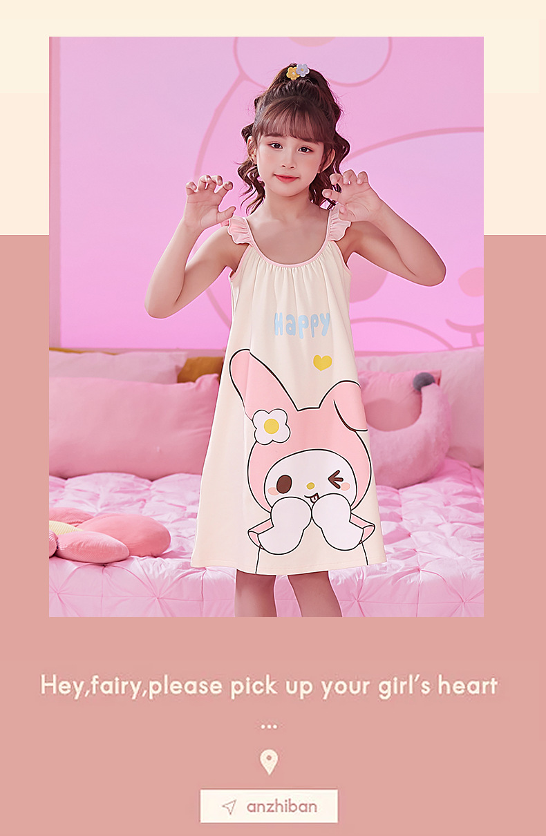 여름 어린이 나이트 가운 여성의 새로운 민소매 코튼 귀여운 어린 소녀 공주 무릎 위 외부 착용 홈 의류 나이트 가운