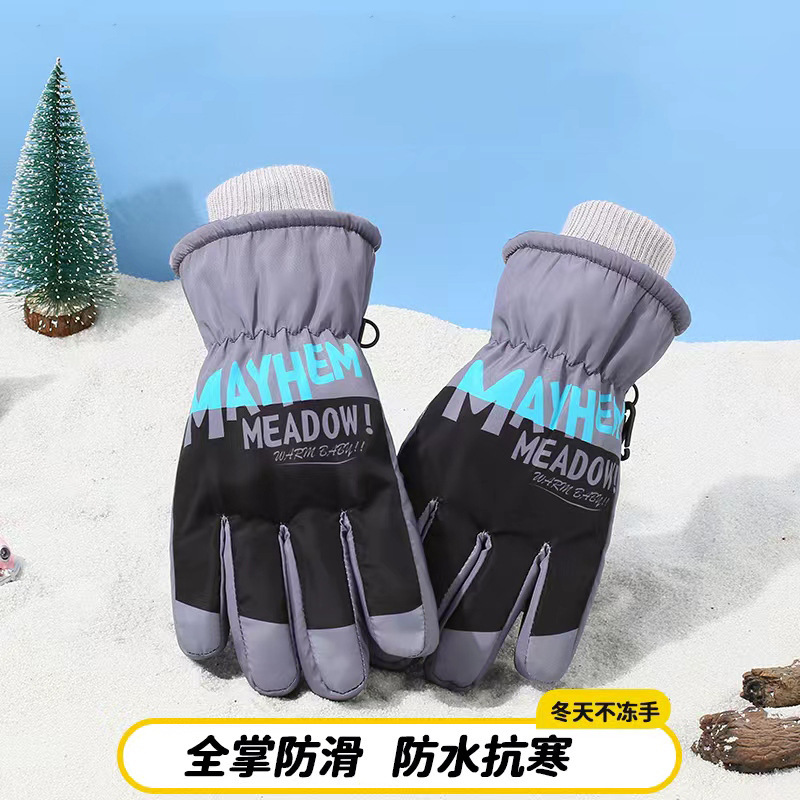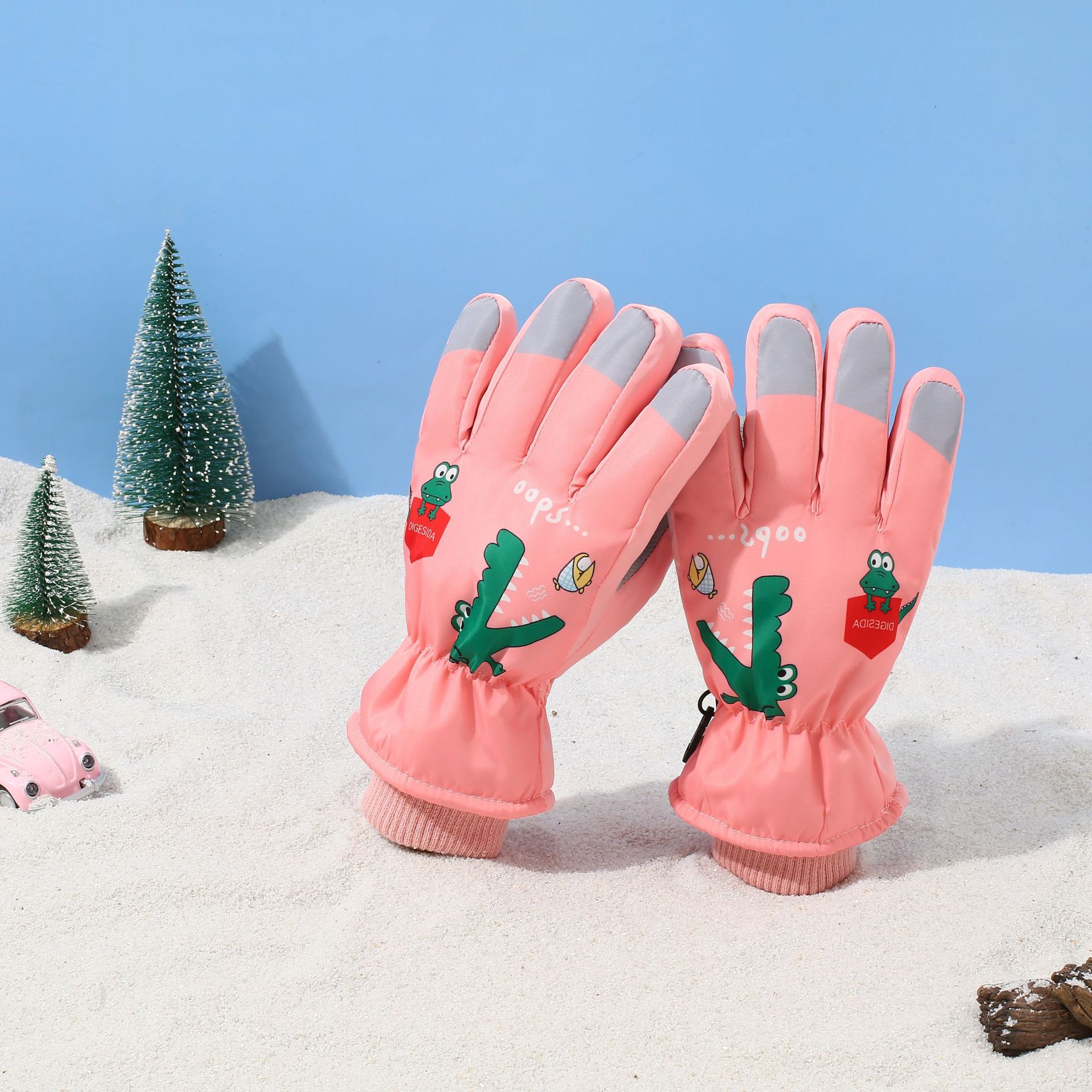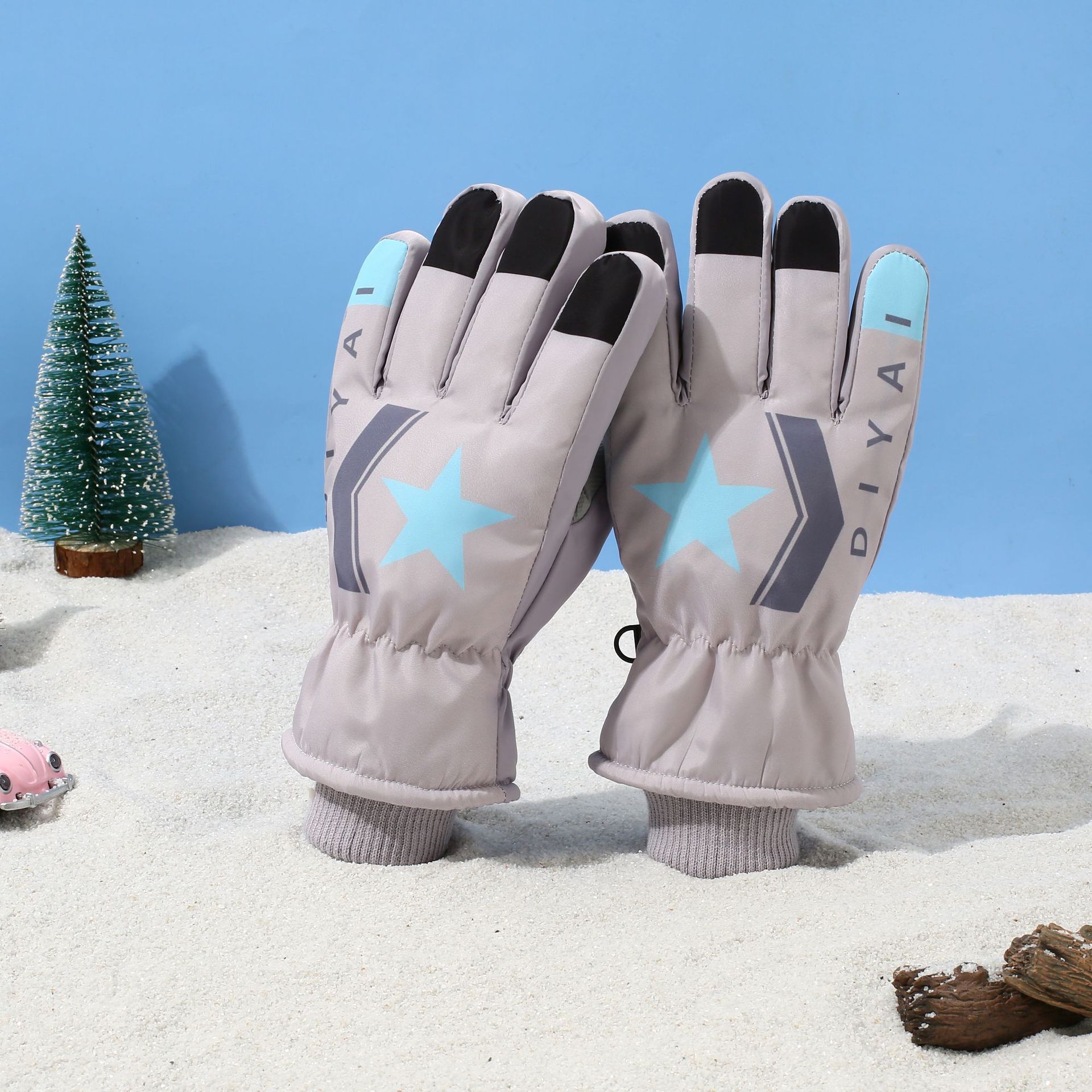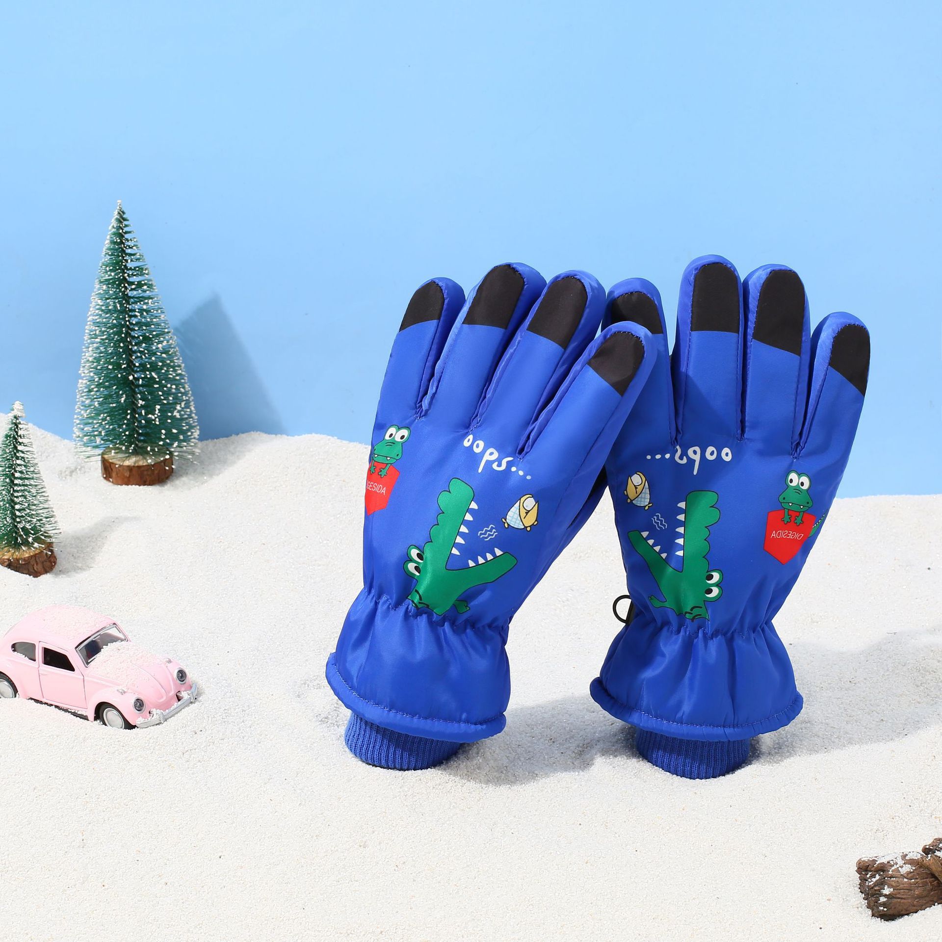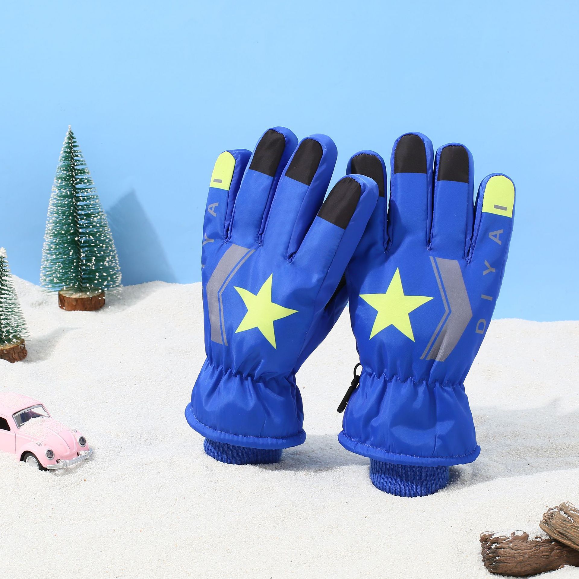 어린이 스키 장갑 남녀 겨울 방수 따뜻한 어린이 야외 눈 방풍 방추위 두꺼운 귀여운 다섯 손가락