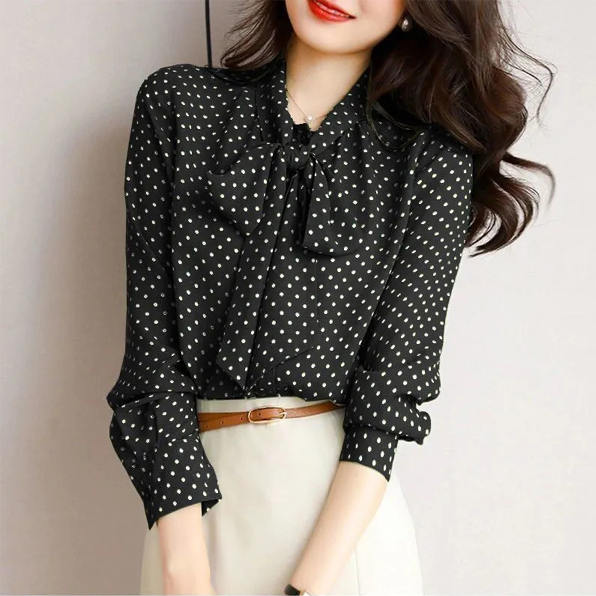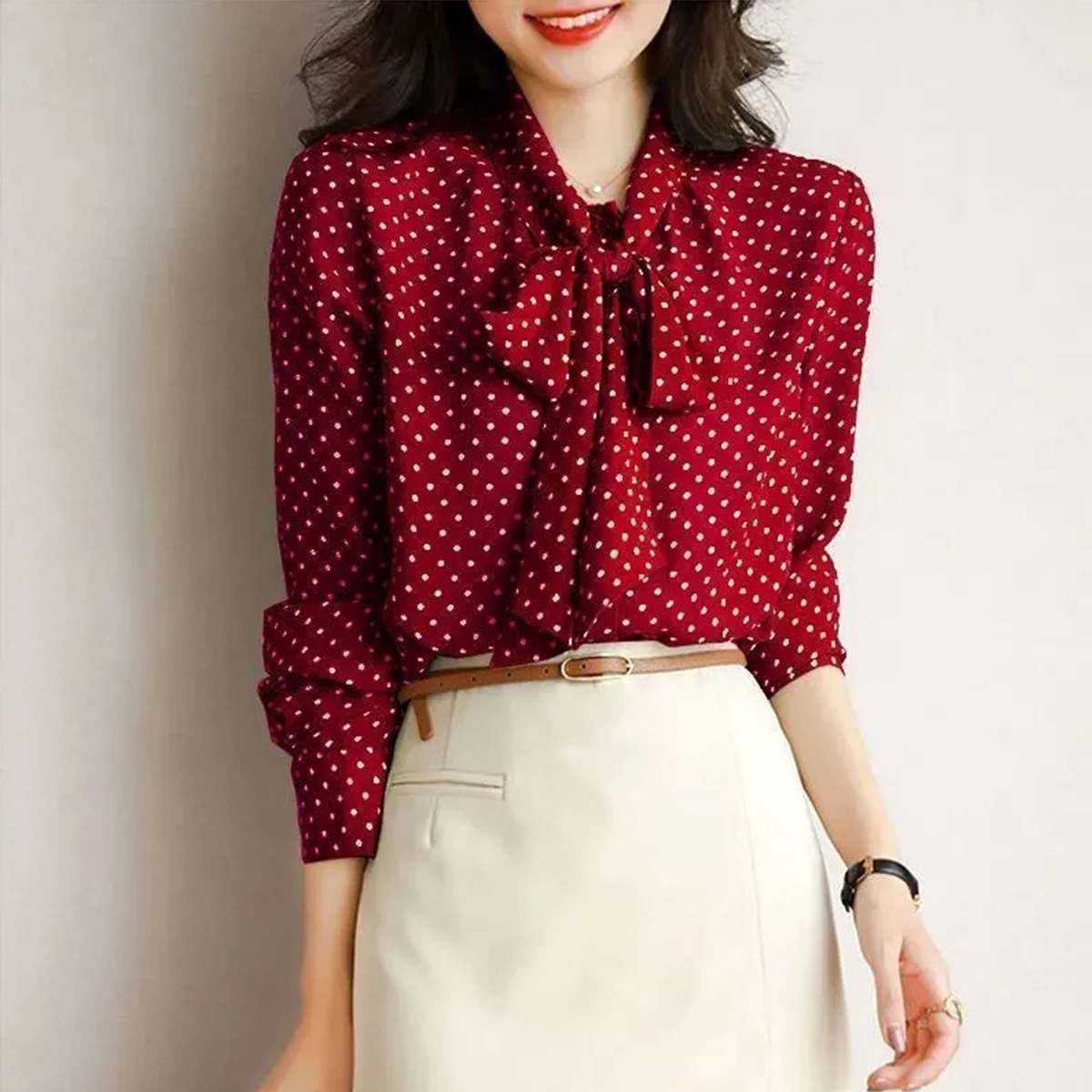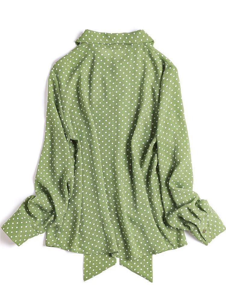 2025 봄 가을 신상 여성용 셔츠 물방울무늬 셔츠 칼라 끈 긴팔 단추 카디건 패션 트렌드