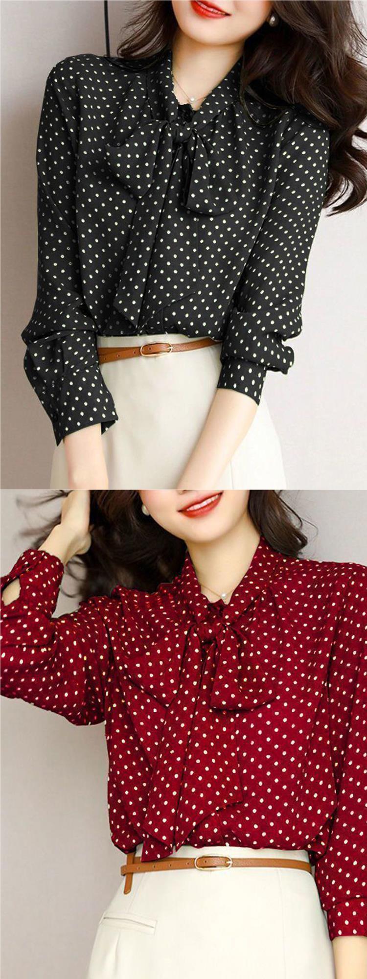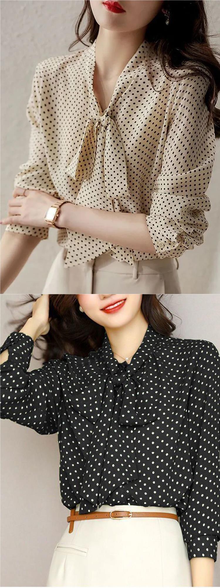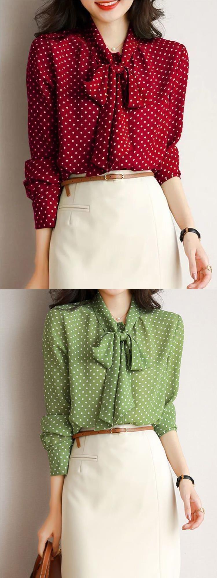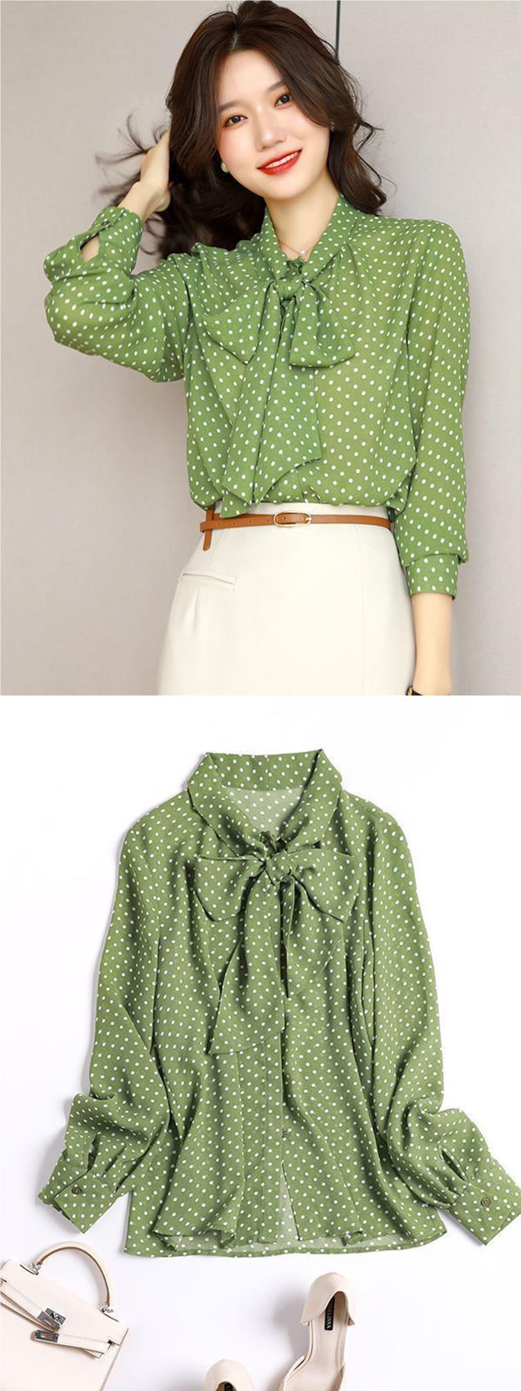 2025 봄 가을 신상 여성용 셔츠 물방울무늬 셔츠 칼라 끈 긴팔 단추 카디건 패션 트렌드스토어 가기