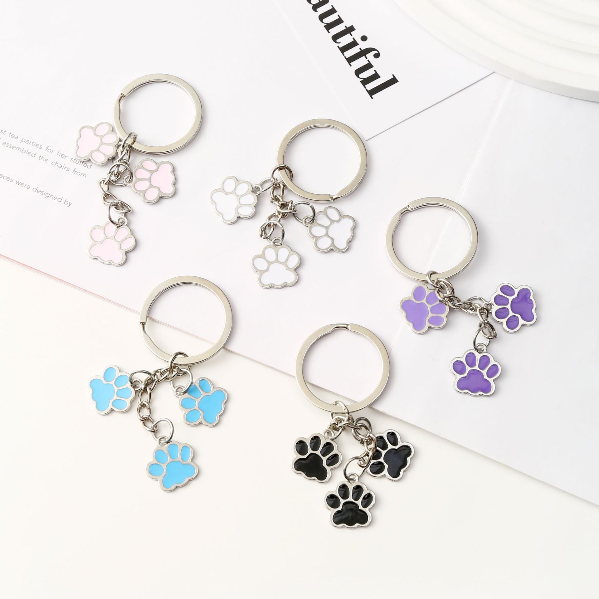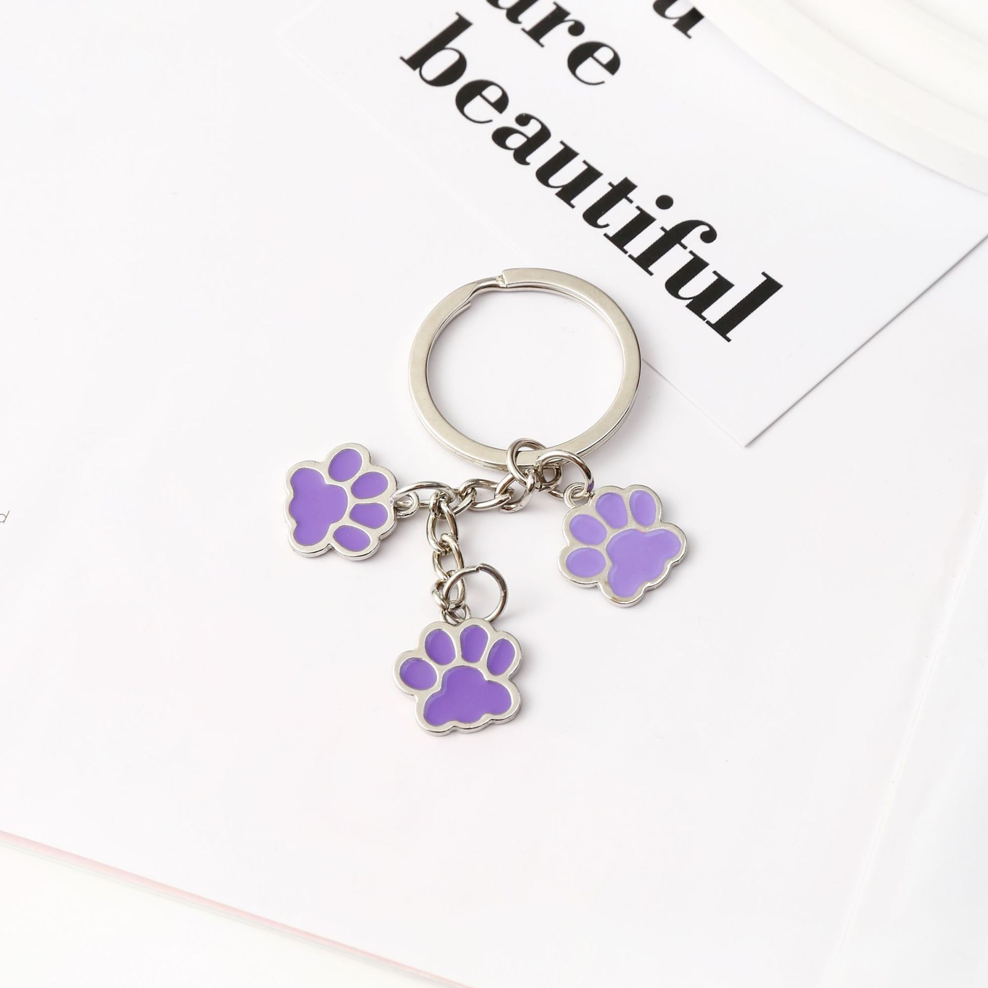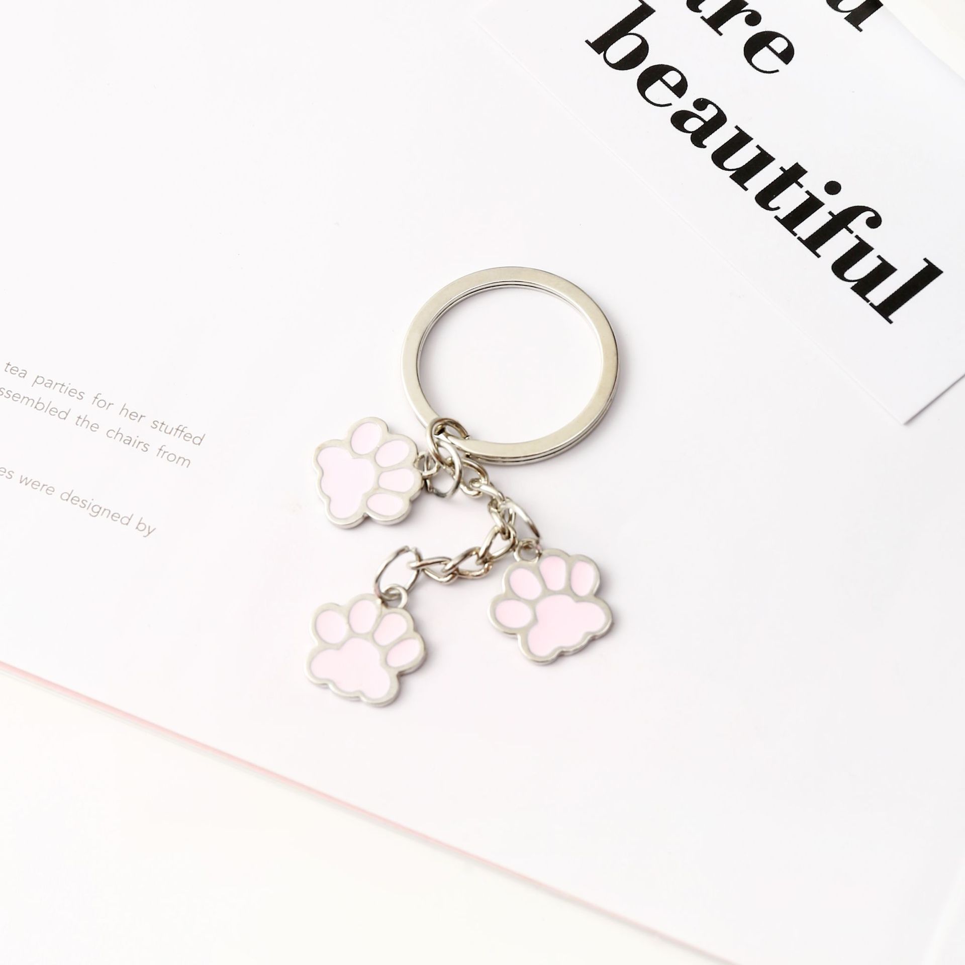크로스보더 만화 고양이 발바닥 키체인 펜던트 합금 자동차 키 가방 액세서리 창의적인 고양이 발자국 귀여운 키체인
