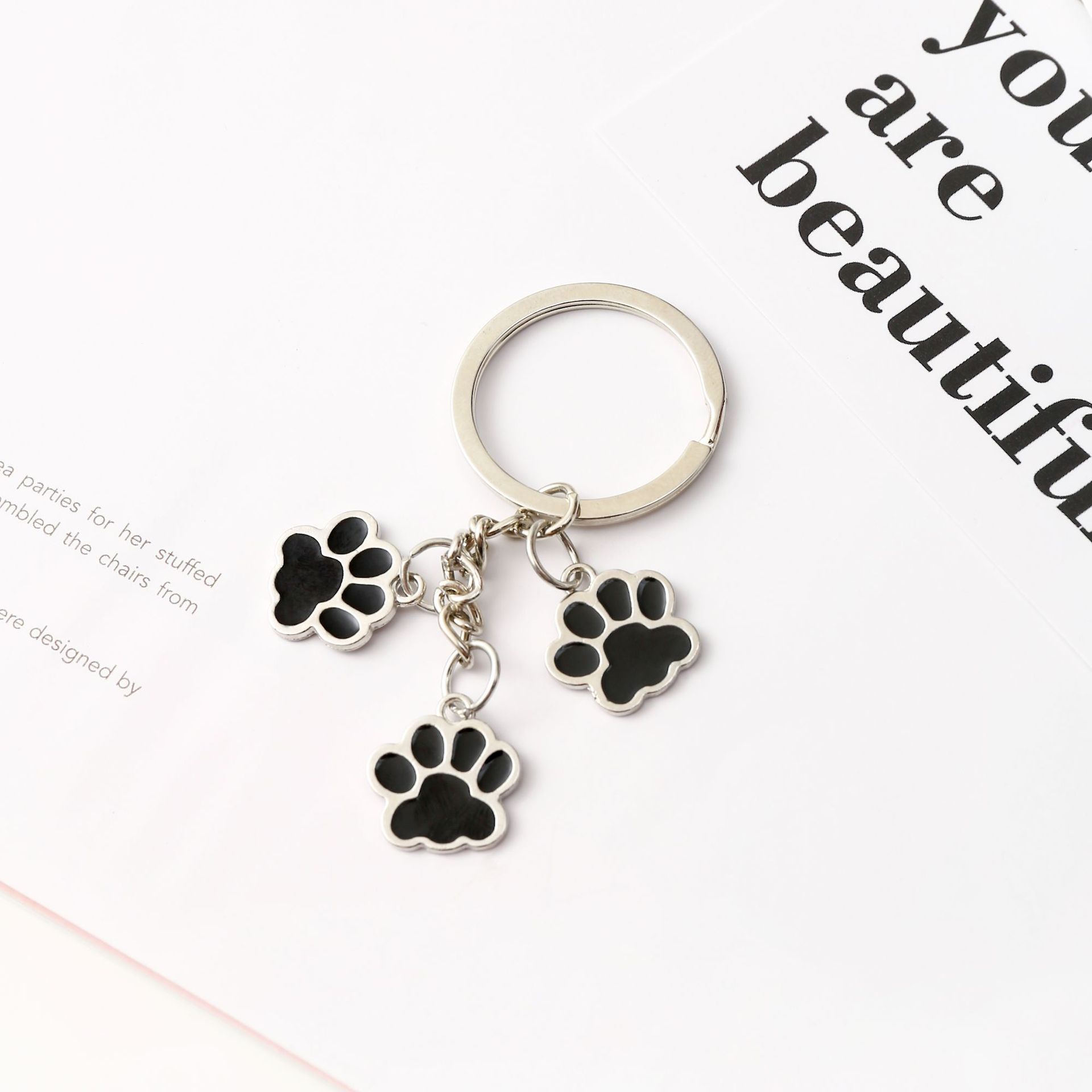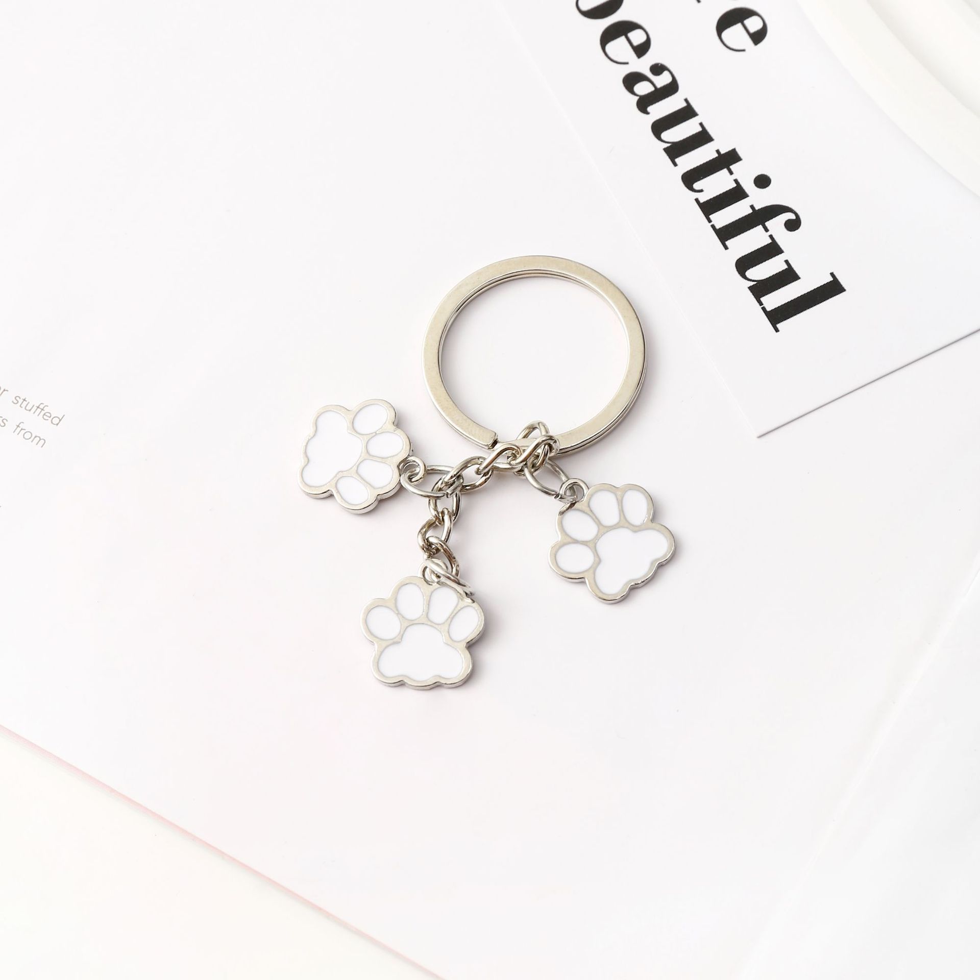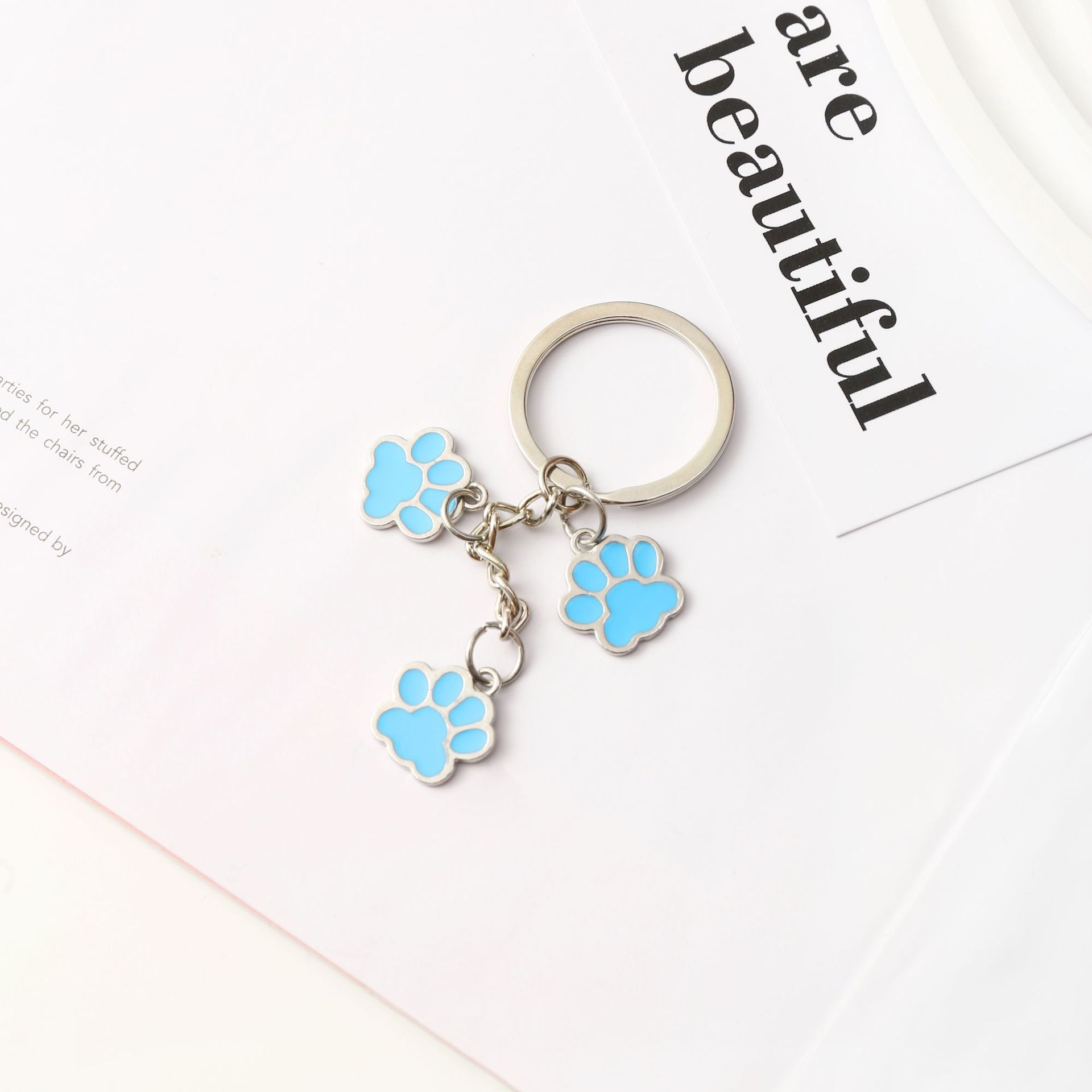크로스보더 만화 고양이 발바닥 키체인 펜던트 합금 자동차 키 가방 액세서리 창의적인 고양이 발자국 귀여운 키체인스토어 가기