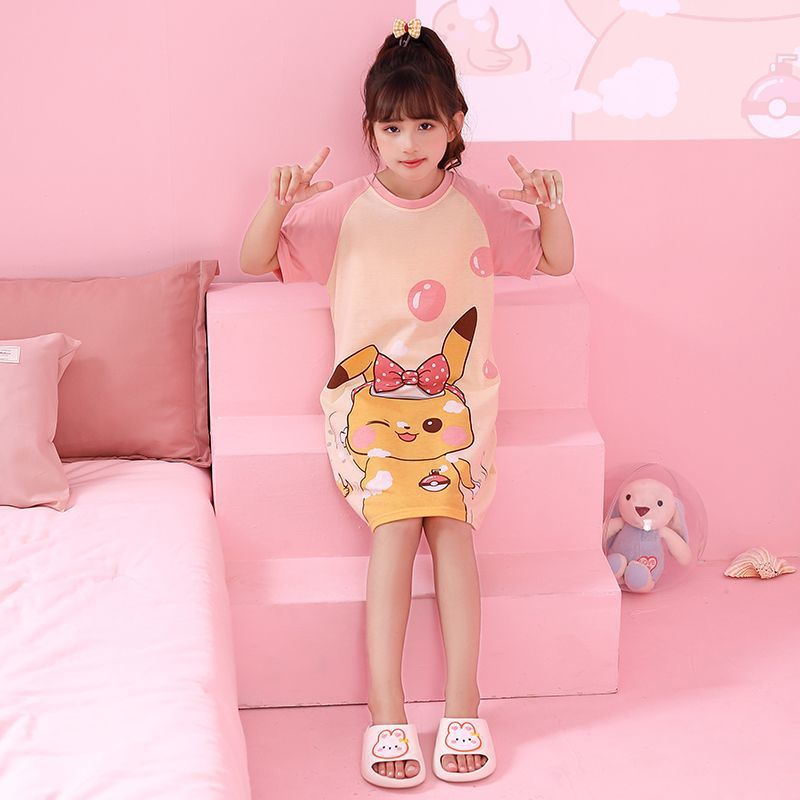 어린이 잠옷 소녀 여름 쿨로 미 잠옷 공주 어린 소녀 큰 아이들 여름 면 반팔 홈 옷 여름