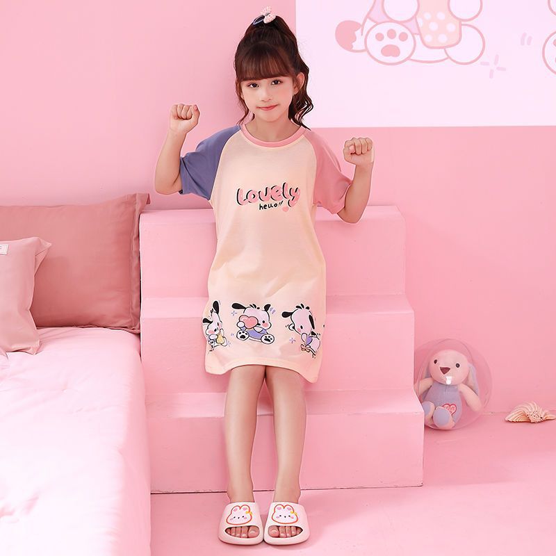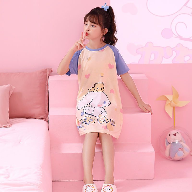 어린이 잠옷 소녀 여름 쿨로 미 잠옷 공주 어린 소녀 큰 아이들 여름 면 반팔 홈 옷 여름스토어 가기