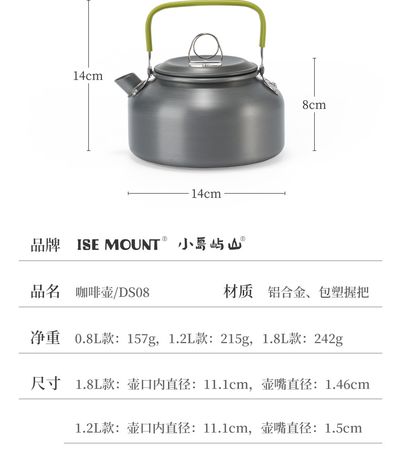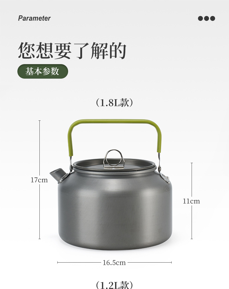 야외 알루미늄 합금 주전자 주전자 대용량 휴대용 캠핑 커피 포트 울트라 라이트 여행 주전자 1.8L