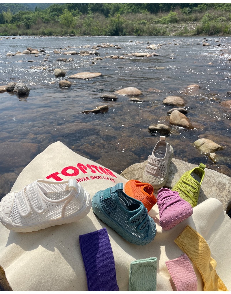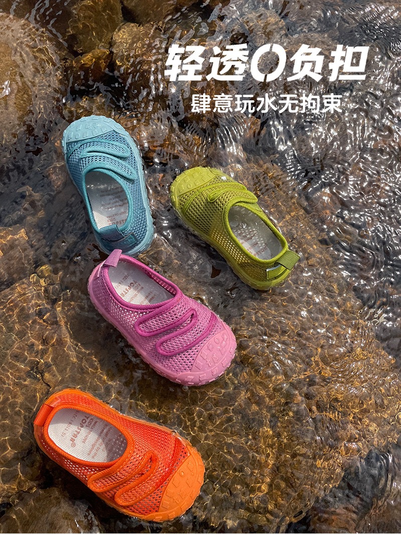 Ts 정품 캔디 컬러 어린이 메쉬 신발 여름 야외 와타리 및 리버 트레이싱 신발 부드러운 바닥 아기 발가락 샌들 7007