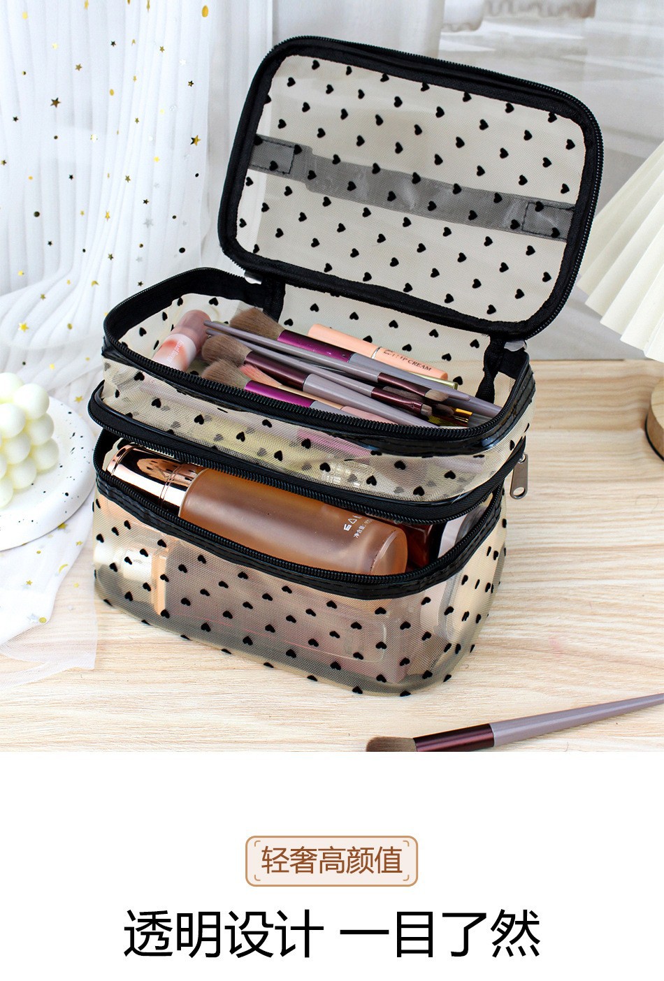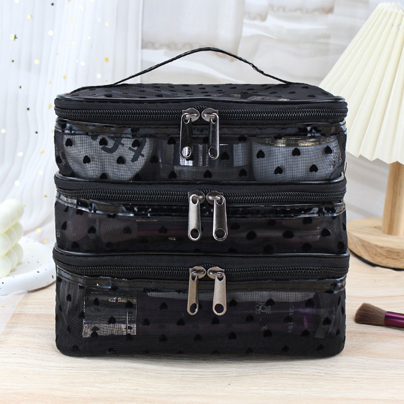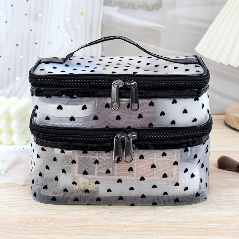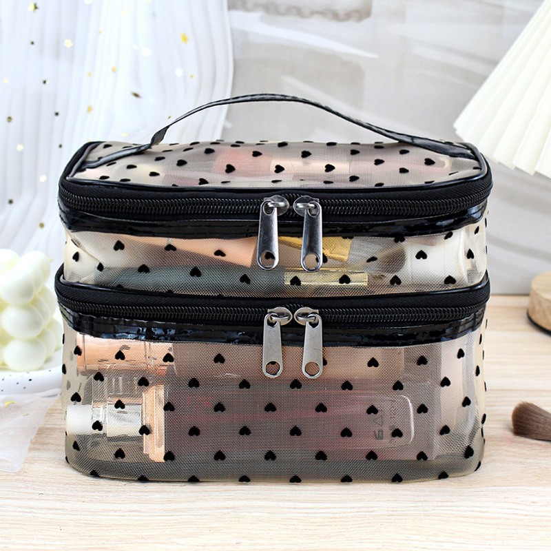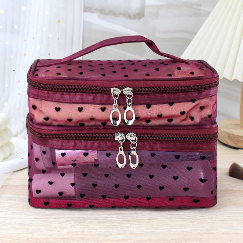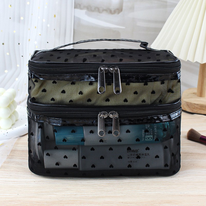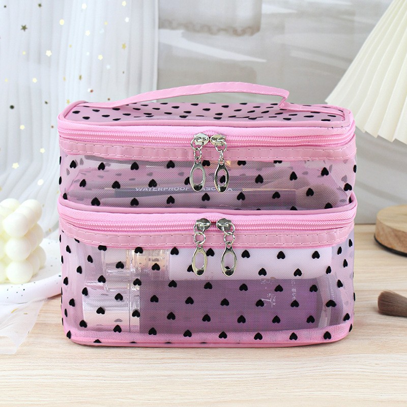 인스 메쉬 하트 모양 세면도구 수납 휴대용 여행용 대용량 화장품 가방 통기성 이우 가방 제조업체 도매