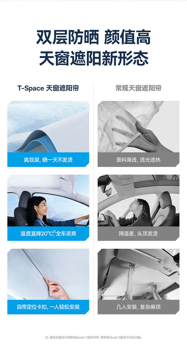 • [모델Y 채광창] 조화로운 오리지널 컬러◆슈프림 에디션 트루 더블 레이어◆얼음 결정 나노 단열재