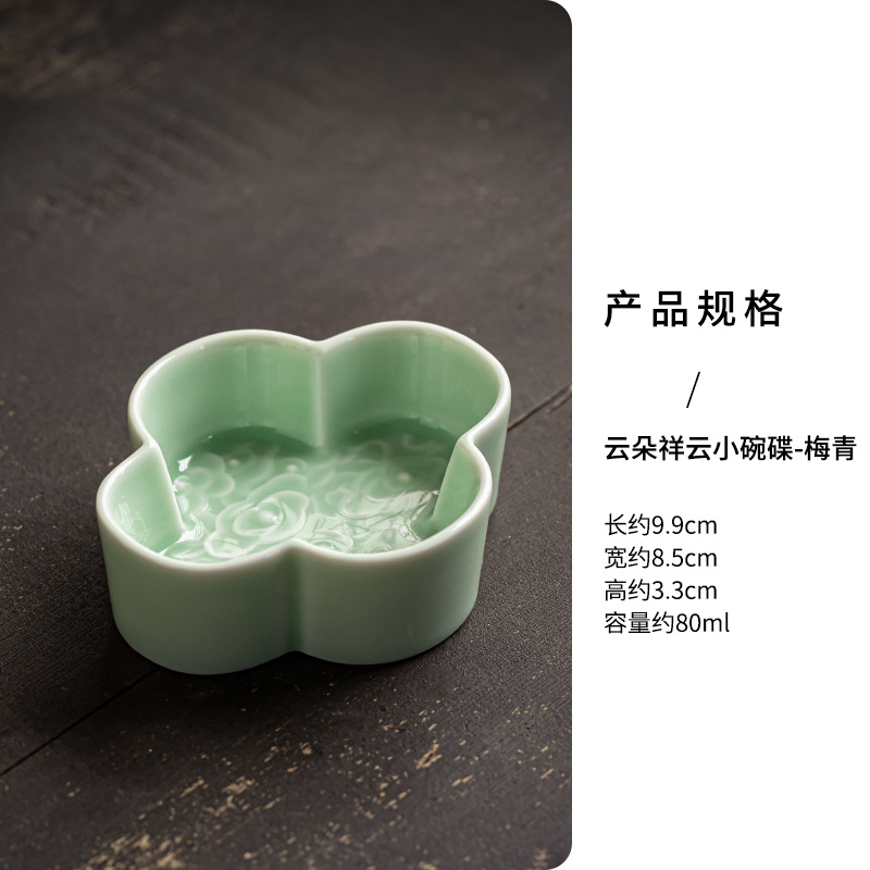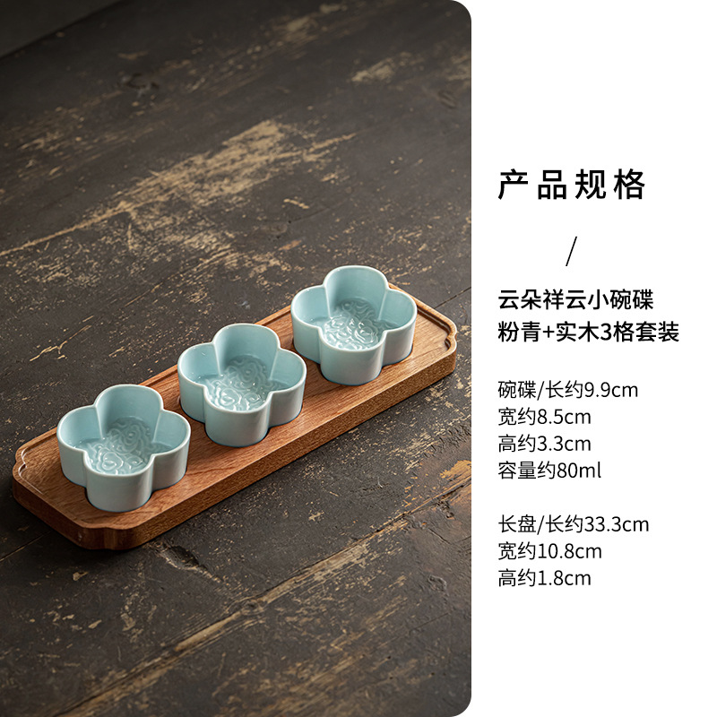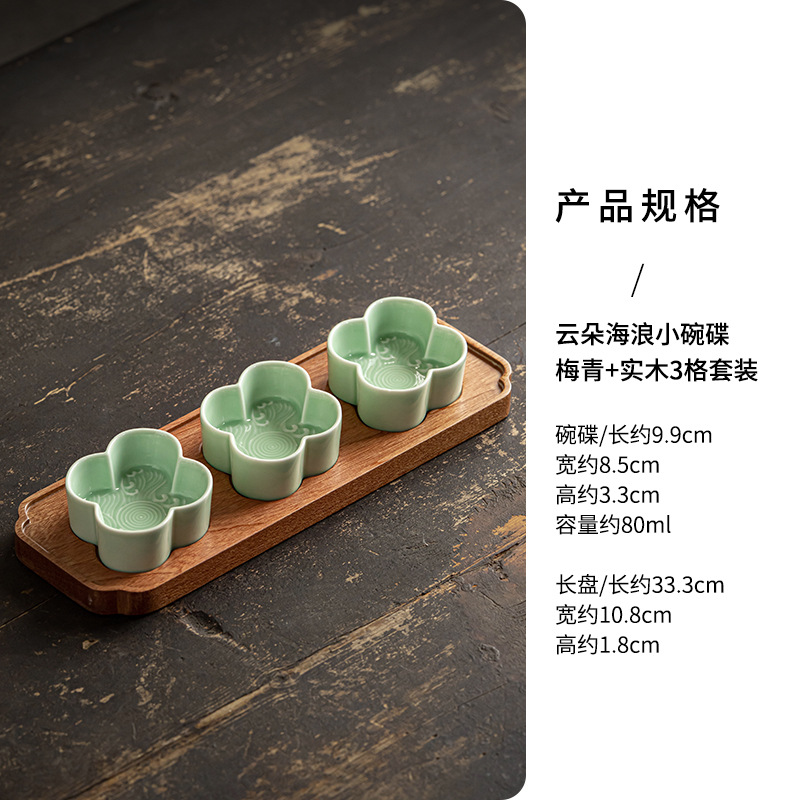 • Yunduo Xiangyun 작은 그릇 - 매화 녹색 + 단단한 나무 3칸 세트