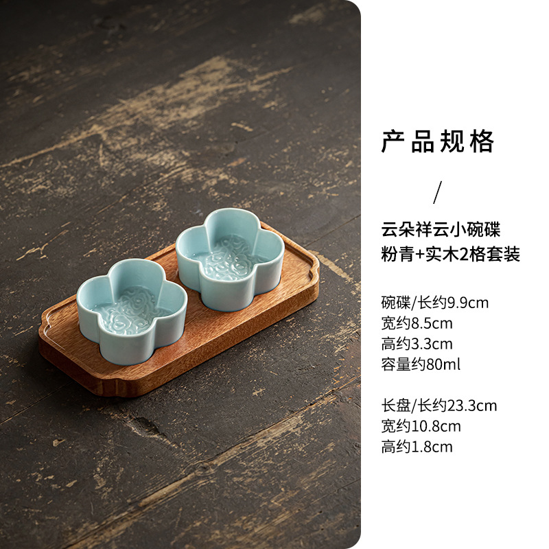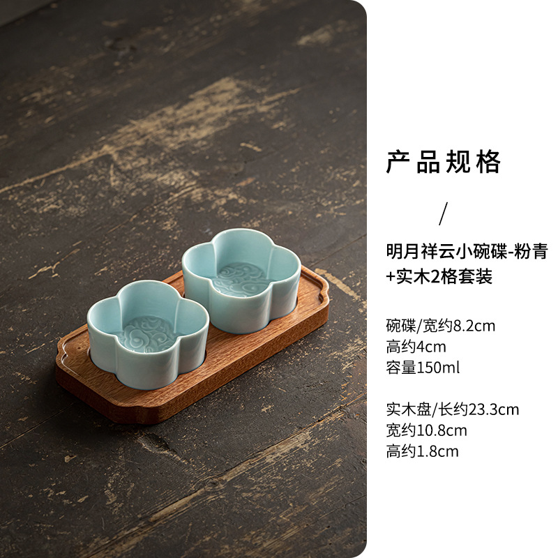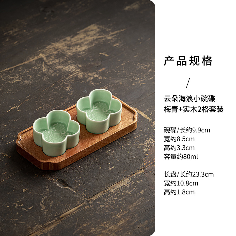 • Yunduo Xiangyun 작은 그릇 - 매화 녹색 + 단단한 나무 2칸 세트