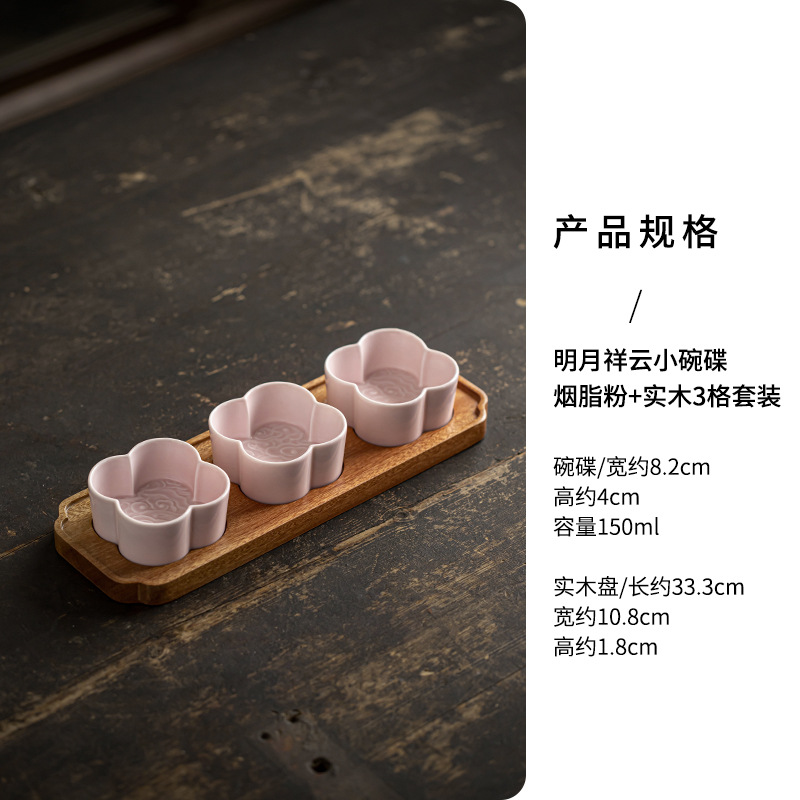 • Yunduo Xiangyun 작은 그릇 - 분홍색 녹색 + 단단한 나무 3칸 세트