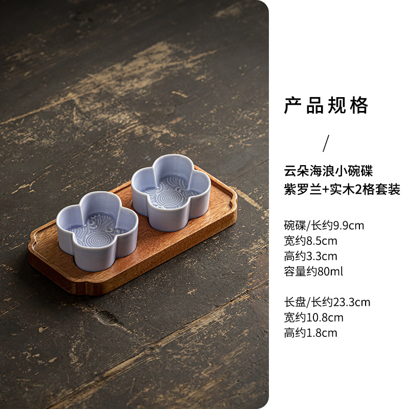 • 구름과 파도 작은 접시 - 바이올렛 + 원목 2칸 세트