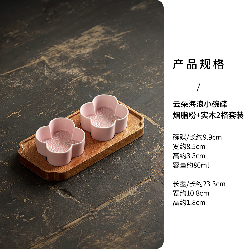 • Yunduo Xiangyun 작은 그릇 - 핑크 그린 + 단단한 나무 2칸 세트