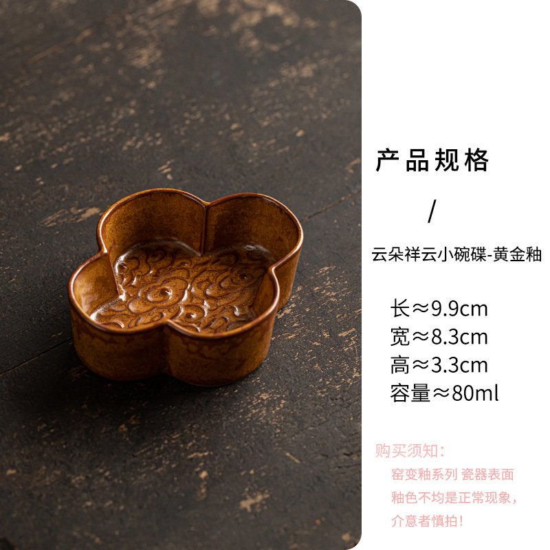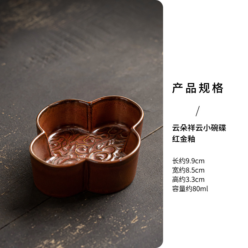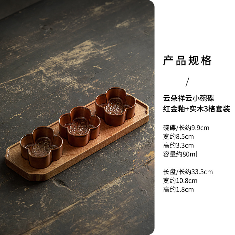 • Yunduo Xiangyun 작은 그릇 - 레드 골드 유약 + 단단한 나무 3칸 세트