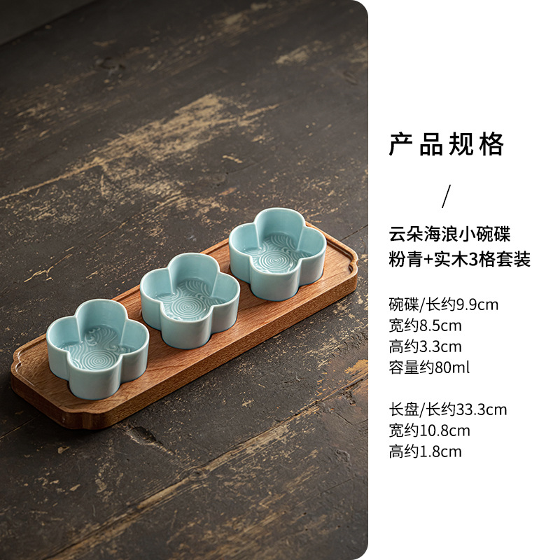 • 구름과 파도 작은 접시 - 지란 + 원목 3칸 세트