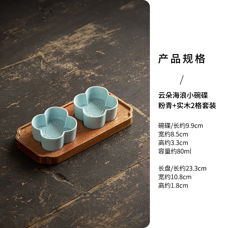 • 구름과 파도 작은 접시 - 지란 + 원목 2칸 세트