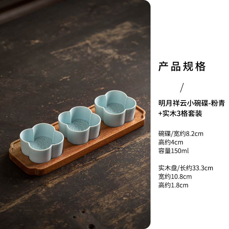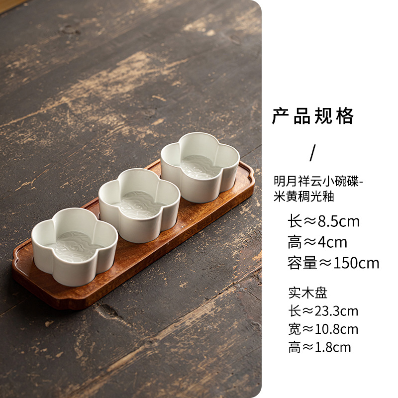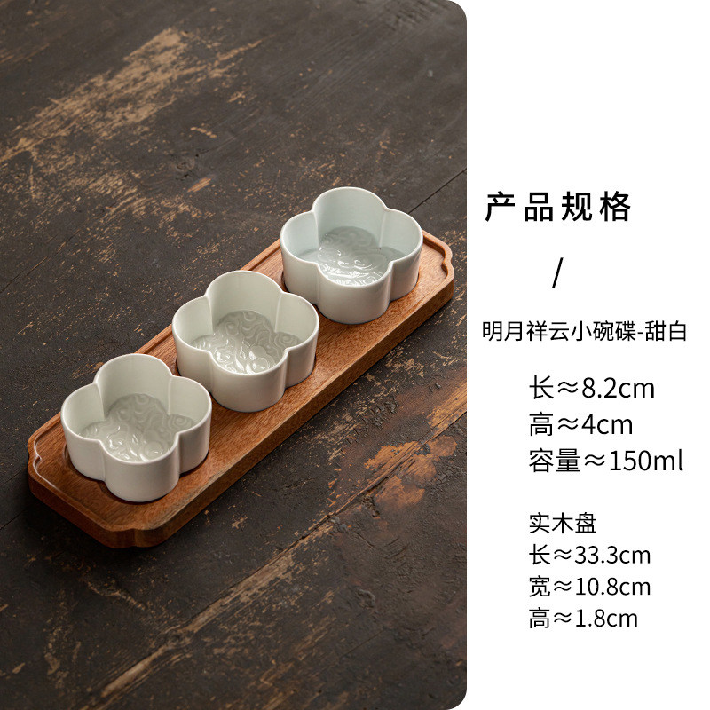 • Mingyue Xiangyun 작은 접시 - 달콤한 흰색 + 단단한 나무 3 그리드 세트