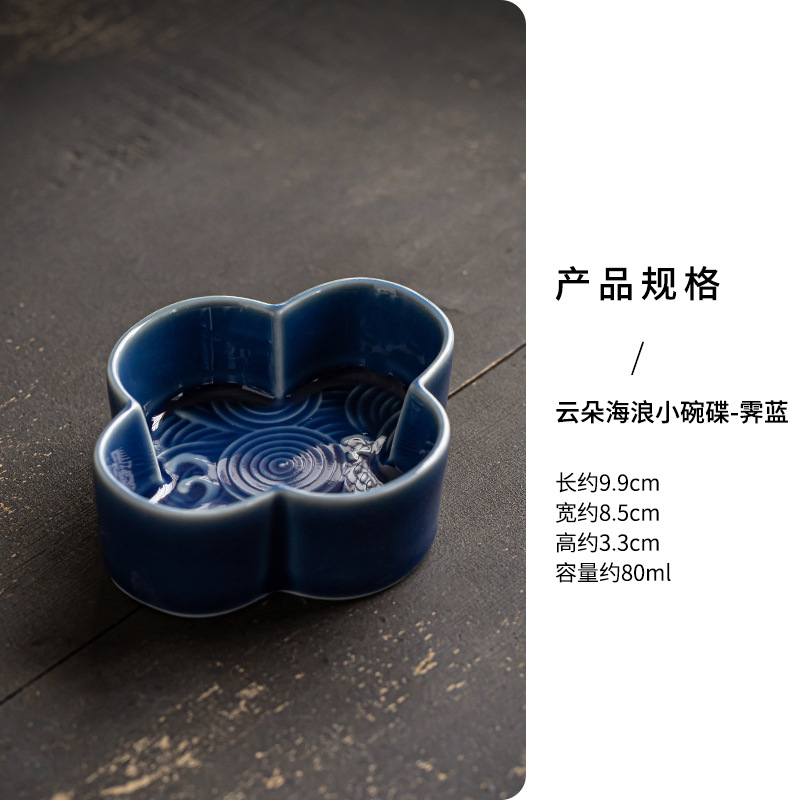 • 구름과 파도 작은 접시 - 레드 골드 유약
