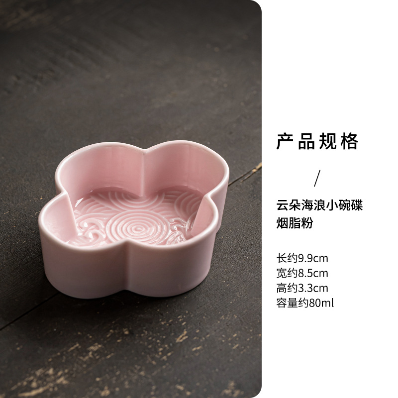 • 구름과 파도 작은 접시 - 연지가루 + 원목 3칸 세트