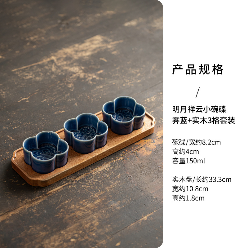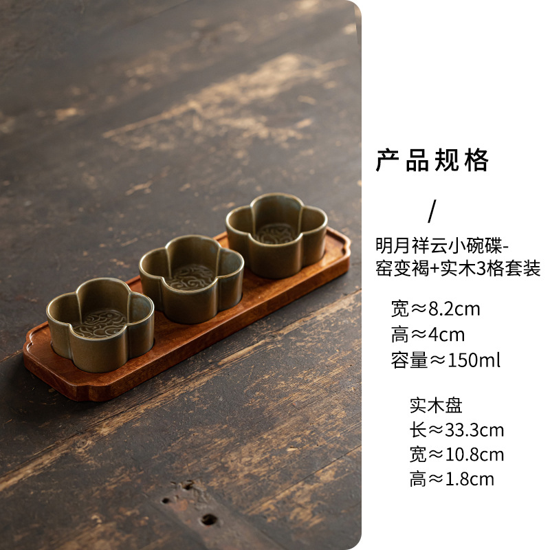 • Mingyue Xiangyun 작은 접시 - 가마 갈색 + 단단한 나무 3 그리드 세트