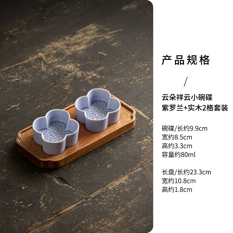 • Yunduo Xiangyun 작은 그릇 - 바이올렛 + 단단한 나무 2칸 세트