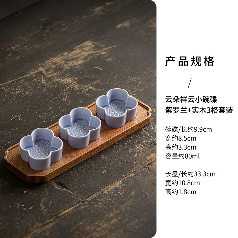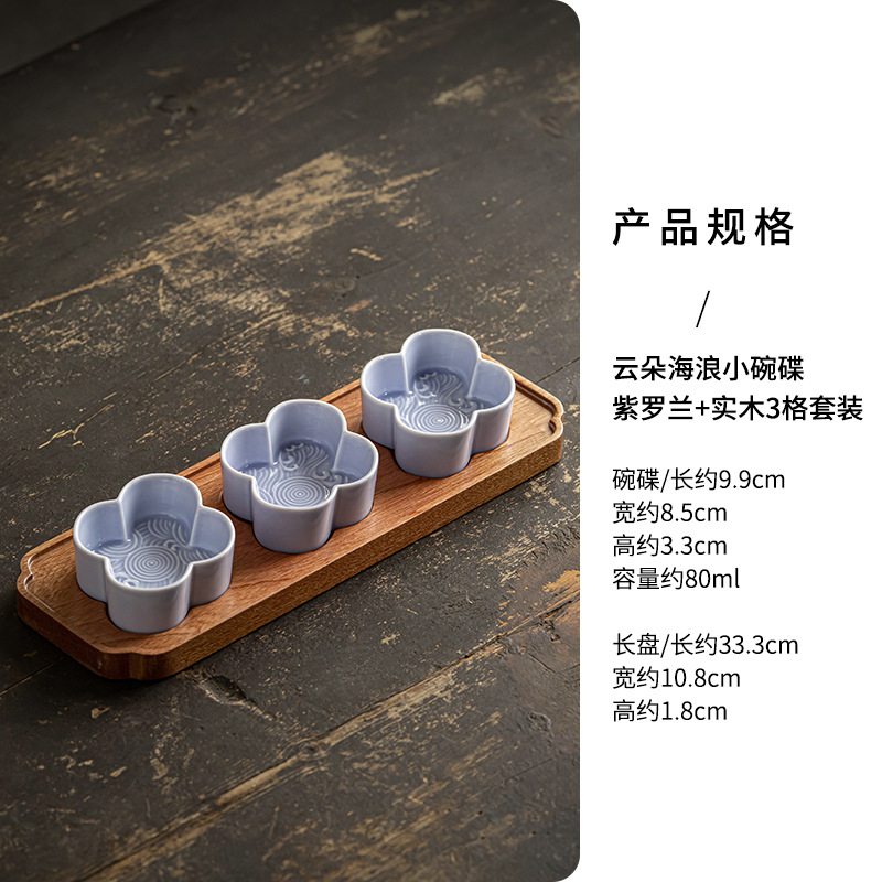 • 구름과 파도 작은 접시 - 바이올렛 + 원목 3칸 세트