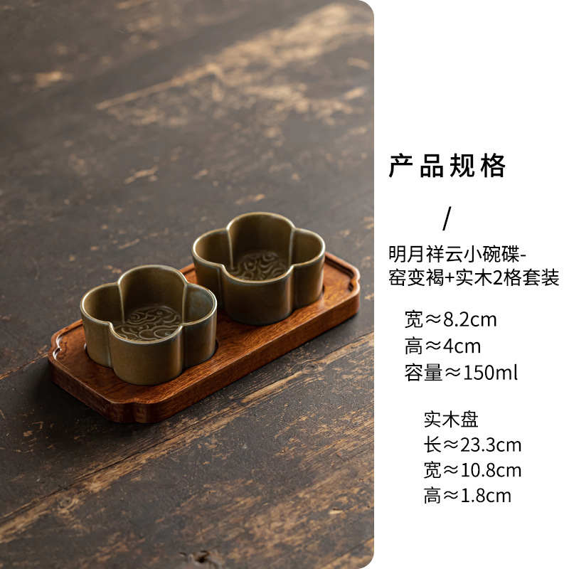 • Mingyue Xiangyun 작은 접시 - 가마 갈색 + 단단한 나무 2 그리드 세트