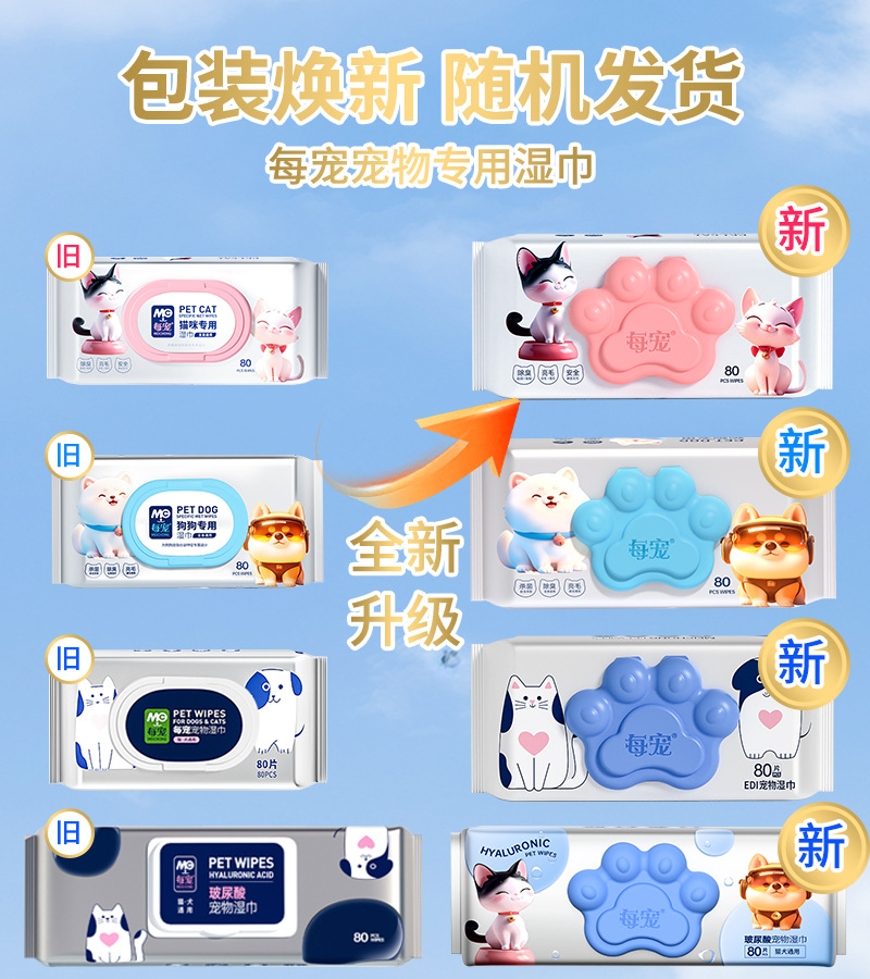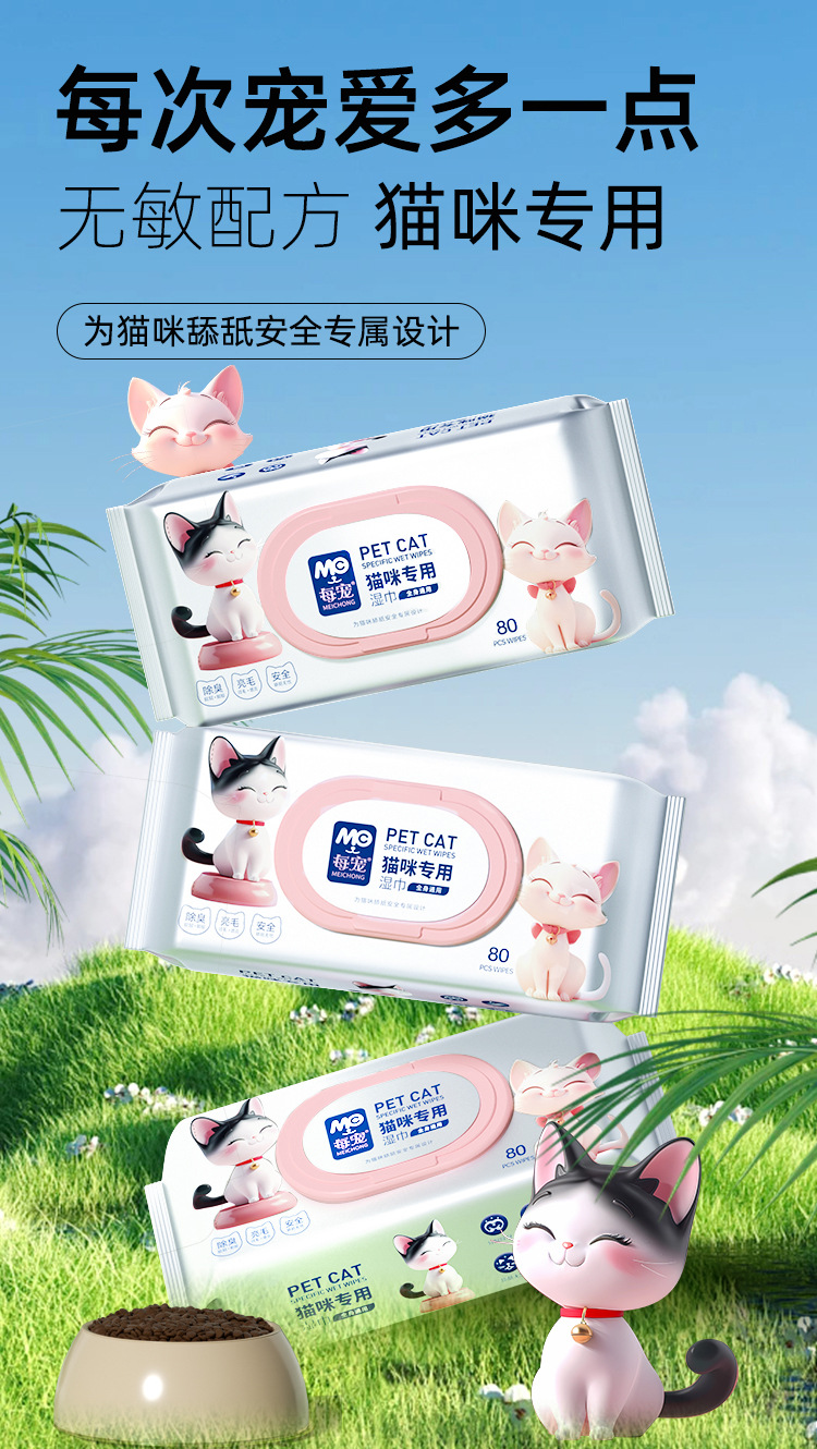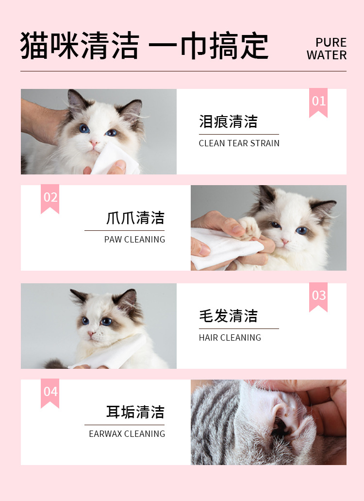 애완동물용 물티슈 고양이 전용 목욕 필요 없는 전신 청소 물티슈 80매 무세척 드라이 클리닝 도구스토어 가기