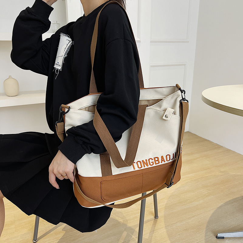 캔버스 가방 여성 가방 새로운 패션 트렌디 한 토트 백 캐주얼 간단한 대용량 어깨 크로스 바디 백
